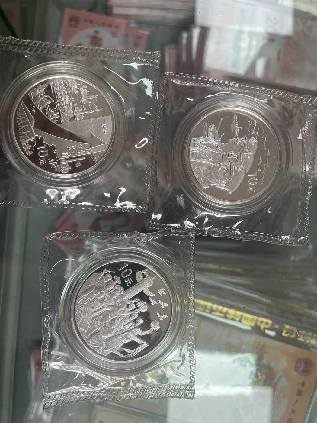 → 建国50周年银币一套售价1500没盒没证