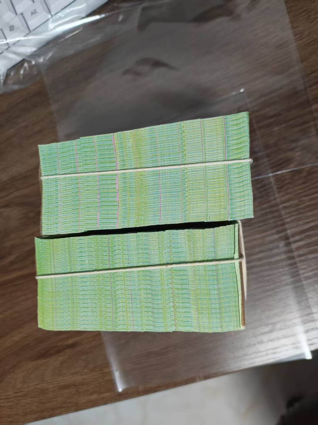 两捆小号荧光五分,肉眼嘎嘎绝,除了紫光灯下有一个面有几个原始黑印如最后两图,其它没有任何瑕疵,特惠一起走11800包邮谢绝议价