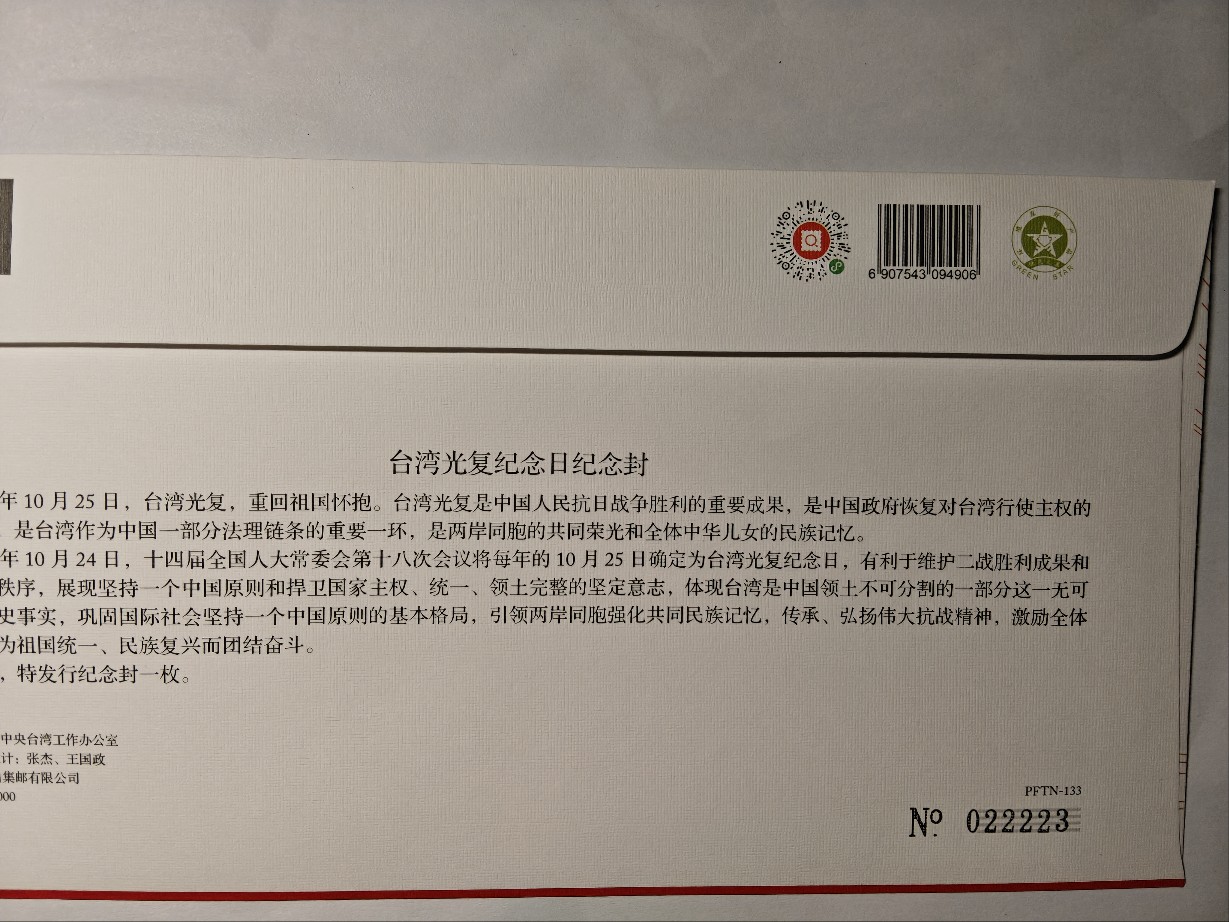 → 台湾光复纪念封靓号