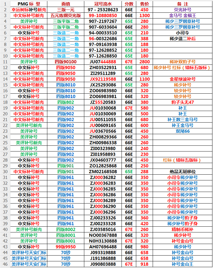 更新出售PMG三四版补号
