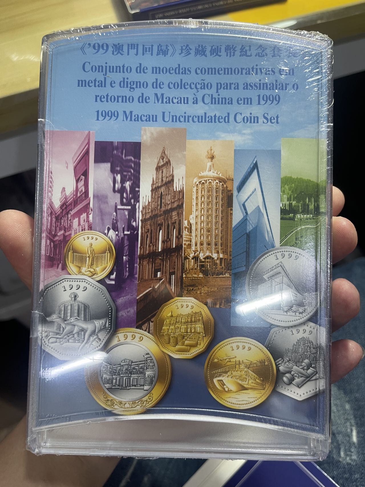 文交所出来的澳门纪念套币,塑料盒的