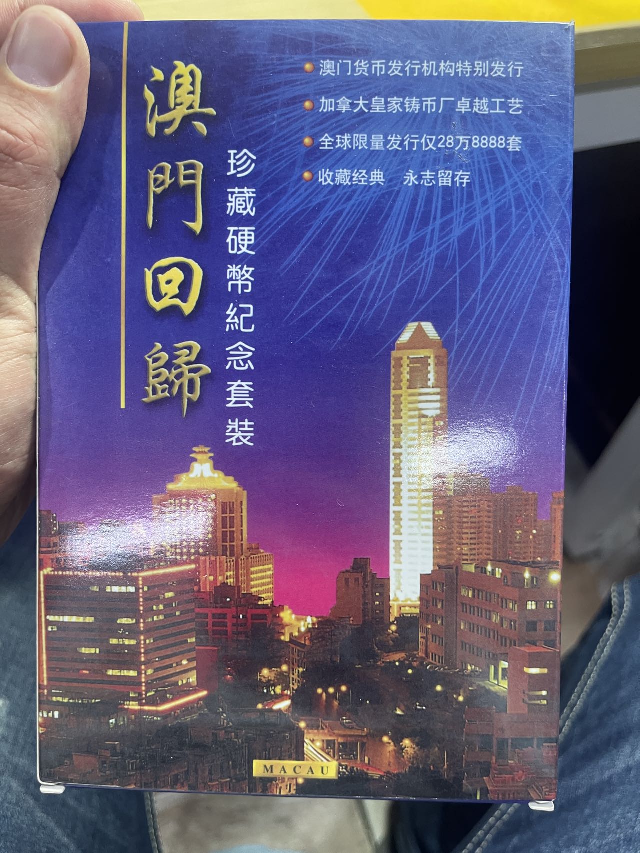 澳门币,珍装发行的,发行量28万8888套,以前六七百一套,都是文交所提出来的。80元一套变现大处理,币还是蛮漂亮的,盒子也是带塑封未拆的。而且文交所的品相都特别好。整箱子买包邮,一箱子48盒,否则运费自给,这个太沉重了,发货麻烦且邮费还高。