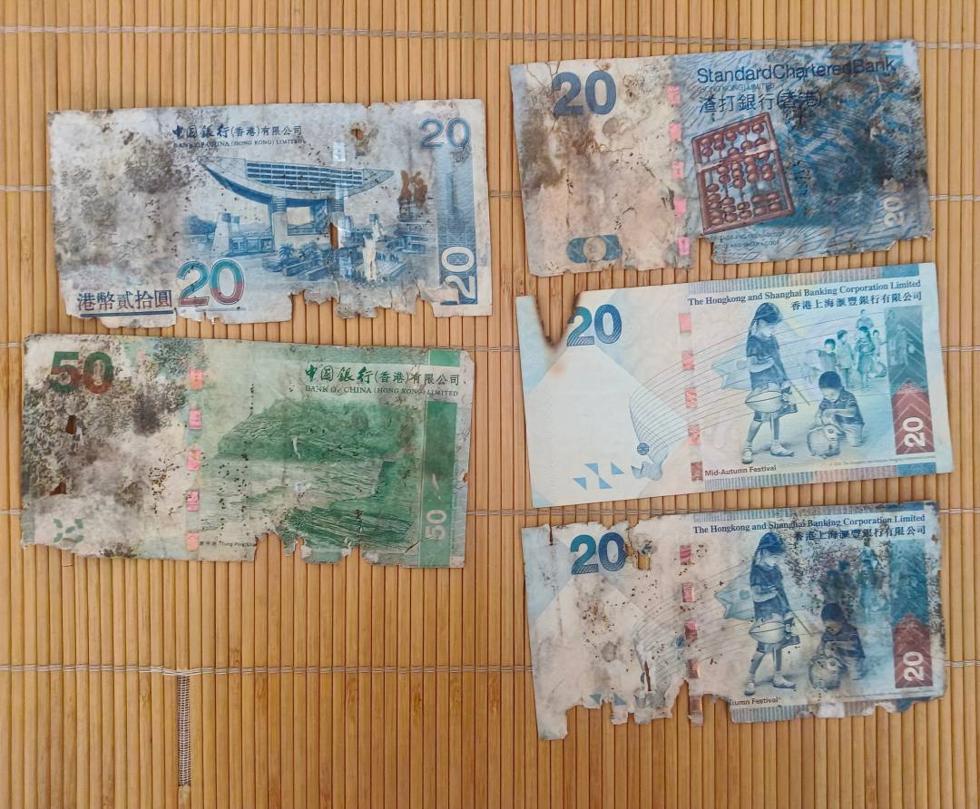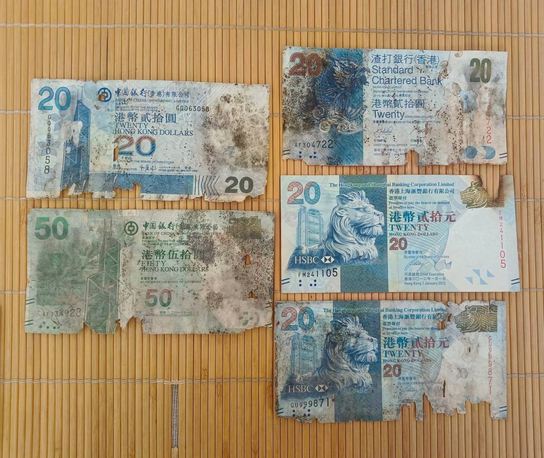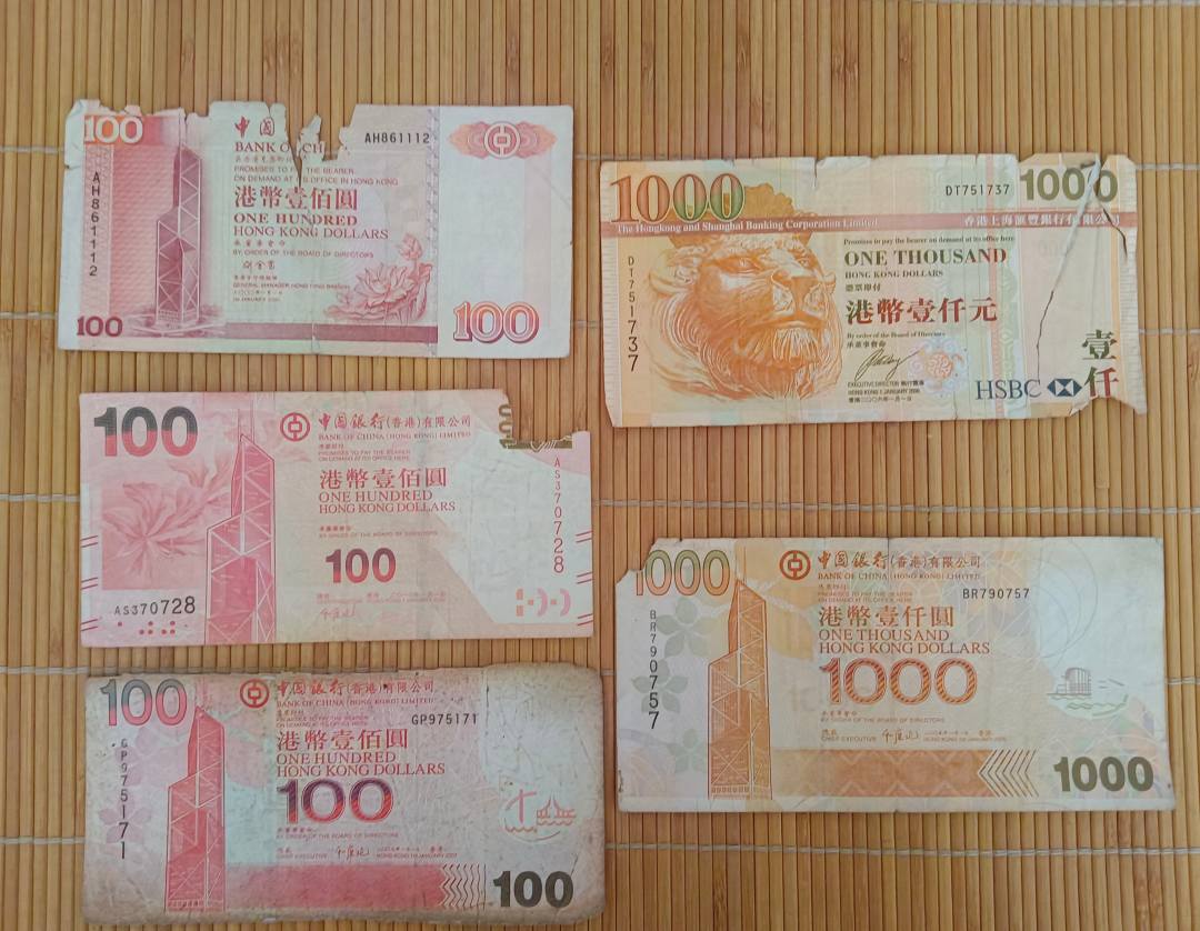 破旧港币2430元 在香港银行可以面值兑换,低于汇率出 0.799*2430=1940元包邮