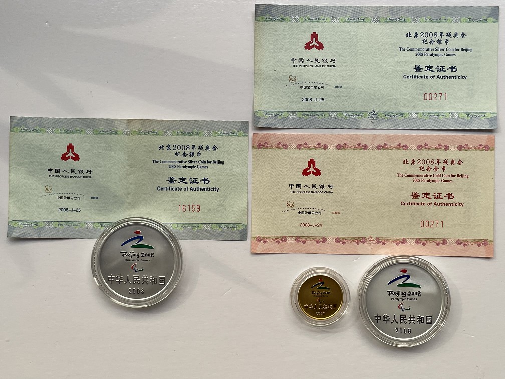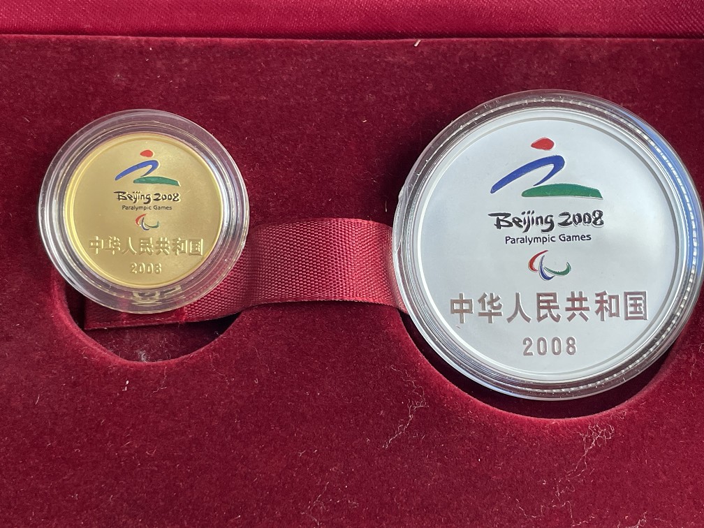 2008年残奥会金银币1套+银币1套,原盒原证书,品相不错,如图,