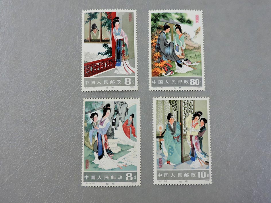 缺;型张4张;【仕女。兵马俑,梅花,牡丹亭】