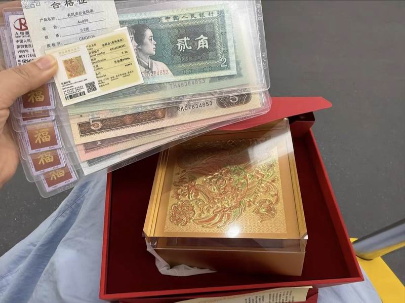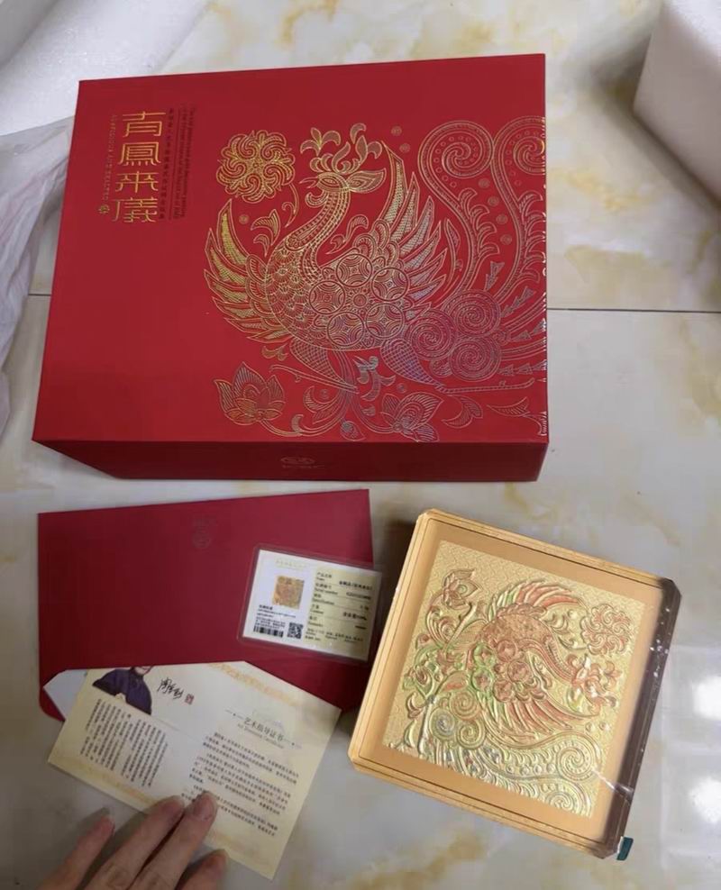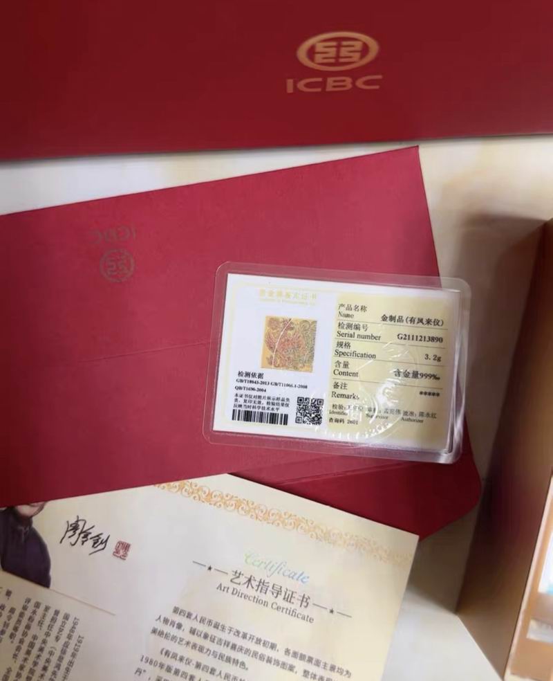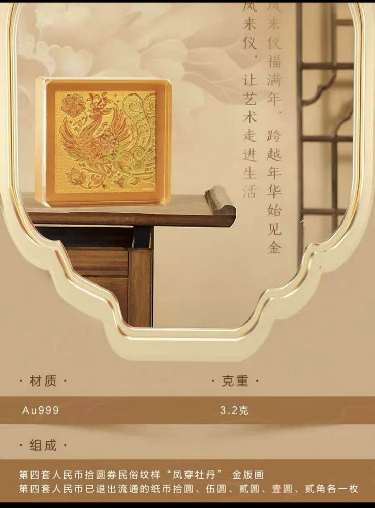 出工商银行永银出品的有凤来仪金版画,含3.2克黄金和纸币