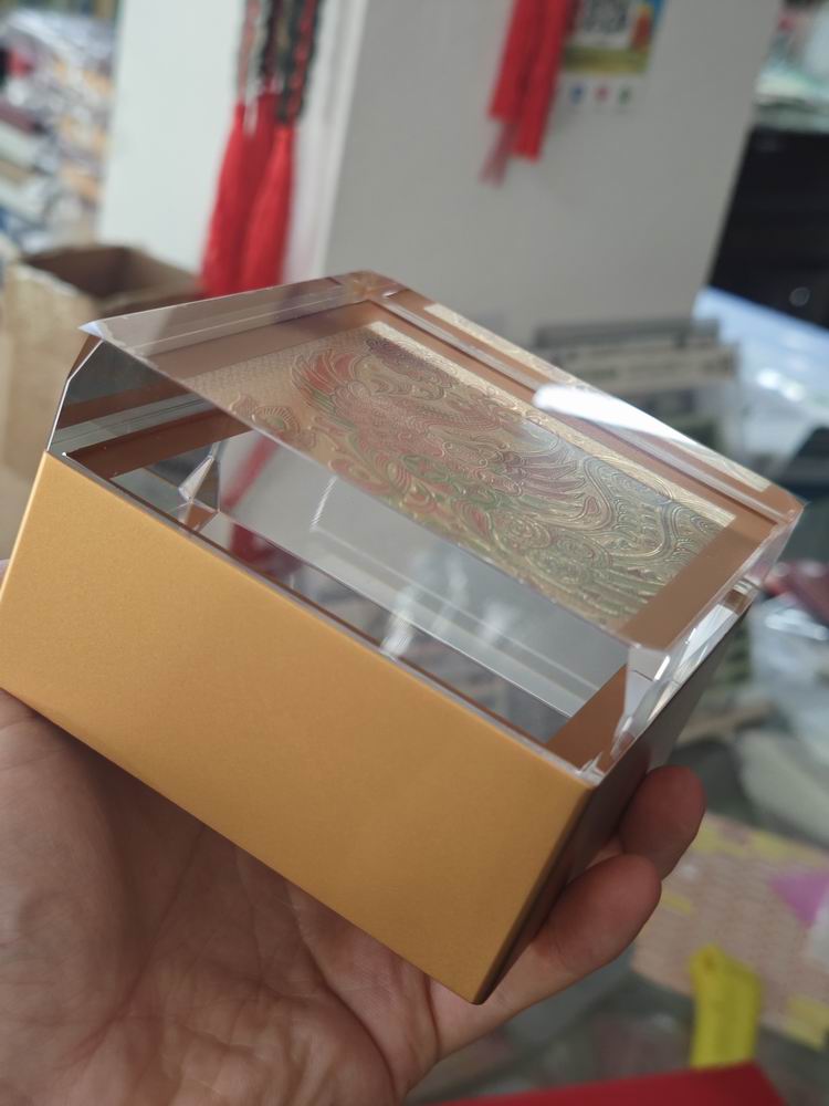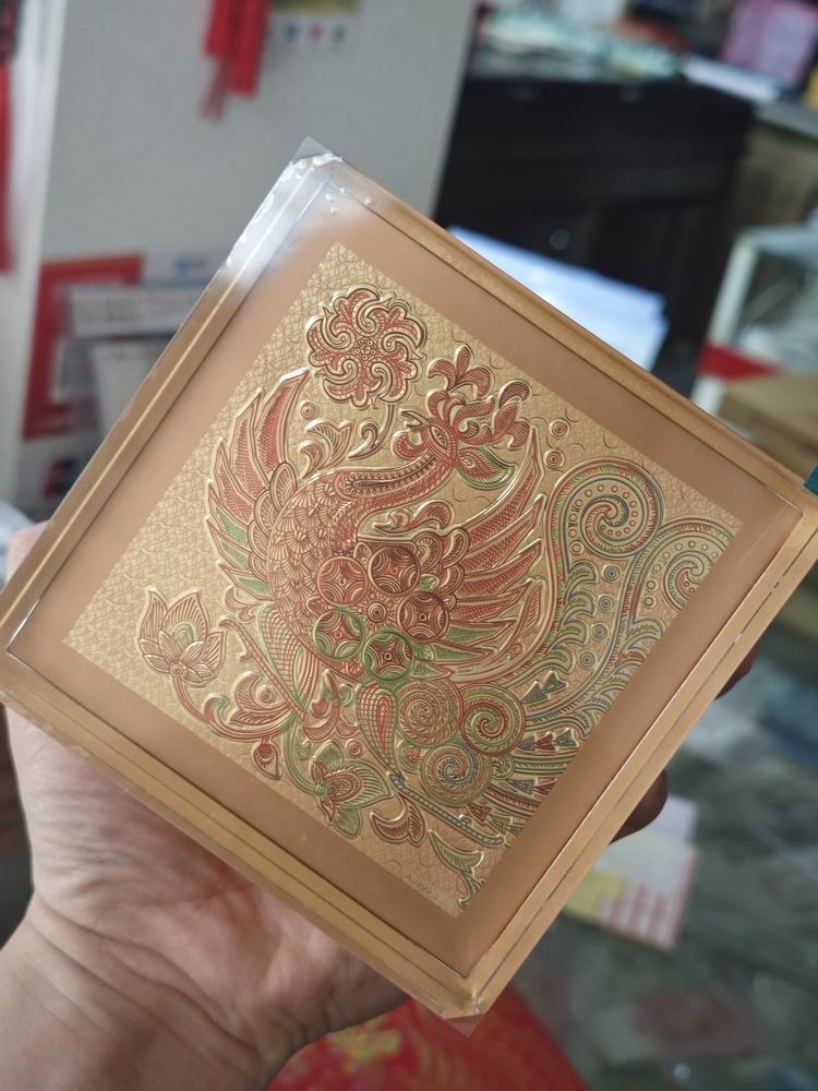 工行有凤来仪金版画(第四套人民币拾圆券火凤凰民俗纹样,亚克力包装),