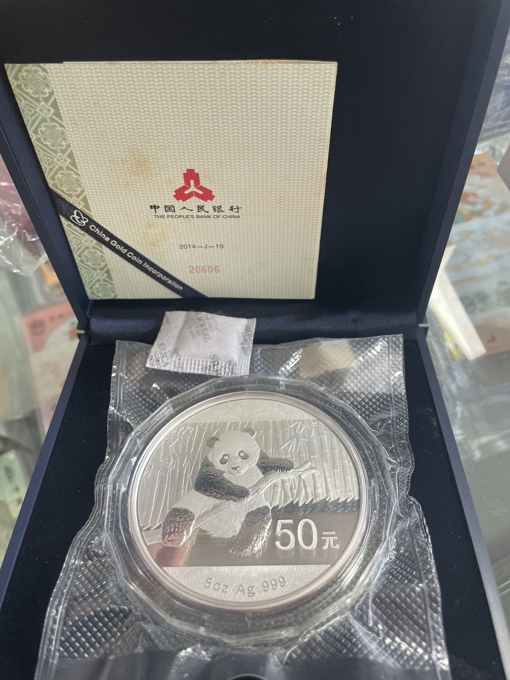 售5盎司熊猫银币13-14年售价1950一枚盒证全