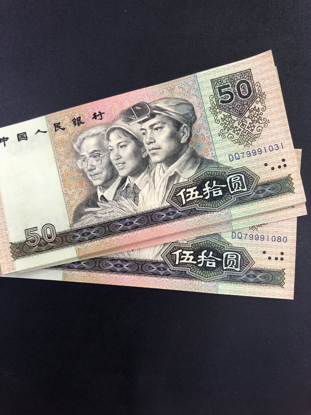 9050金星绿波中间豹小连号40 张,都是同一刀小连号,全品灯下无斑。仅售128/张