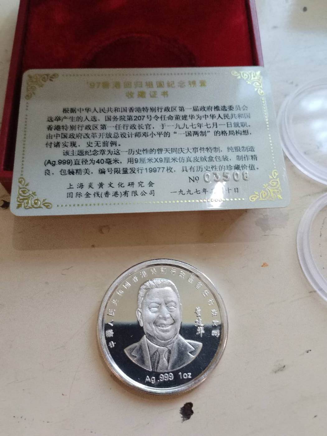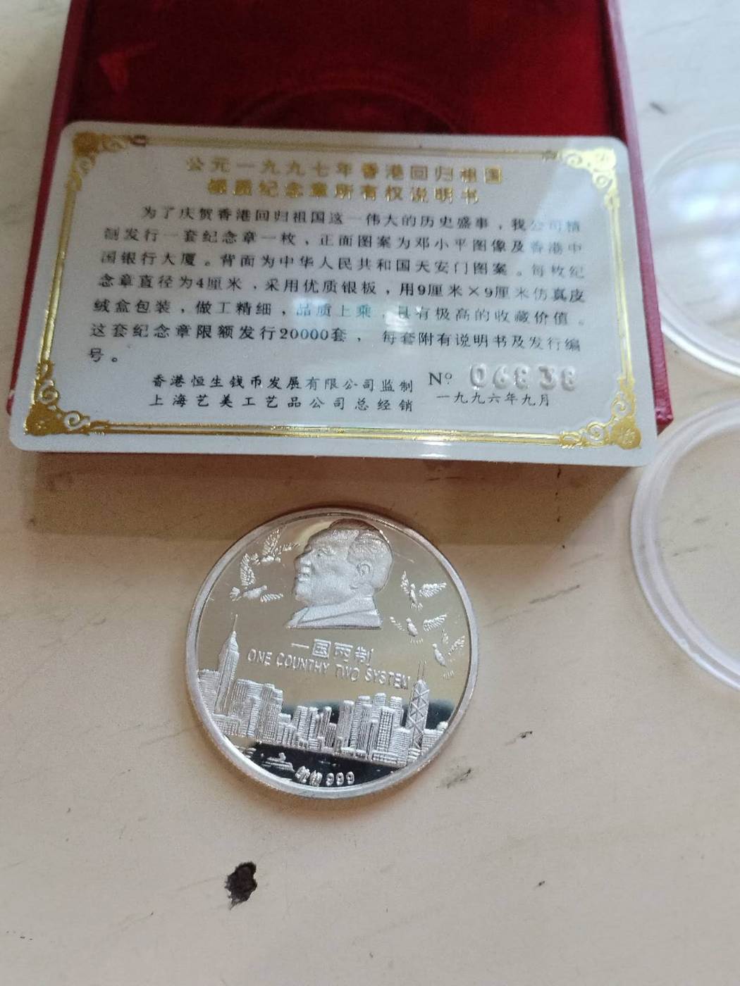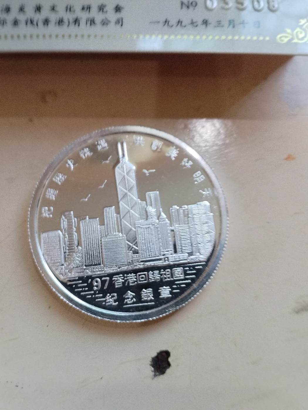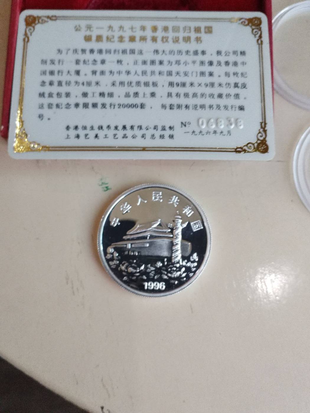 出毛泽东诞辰100周年银币一枚,香港回归纪念银章二枚,三枚一起售1880元,款到三包顺丰!确认后电联或加微信tmw899联系!图片如下,