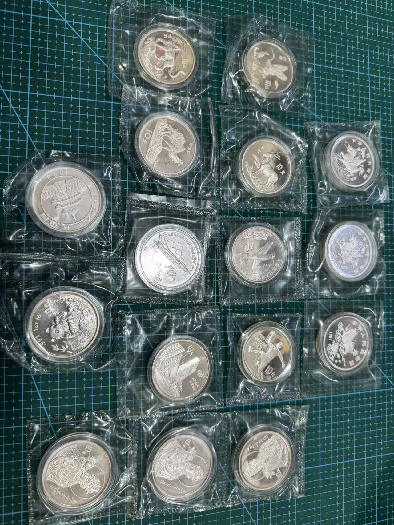 麒麟3枚,野生动物2对,航空45年一对,96年奥运1枚,联合国一枚,96年观音3枚,96年熊猫2枚,一共16枚,全是原封