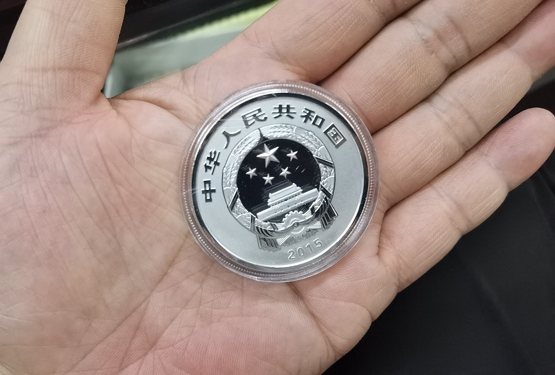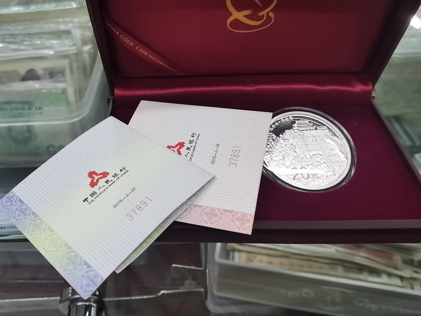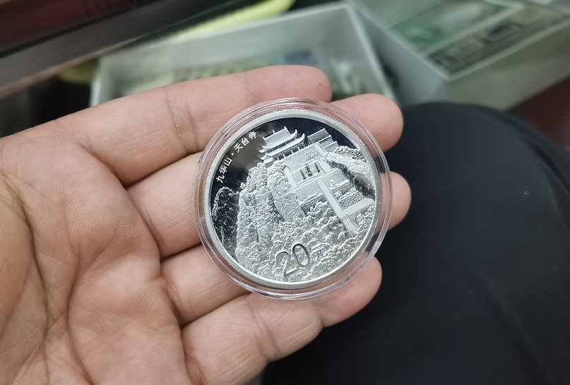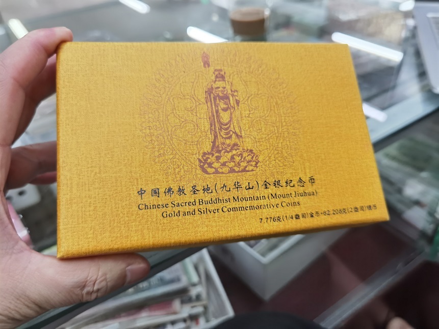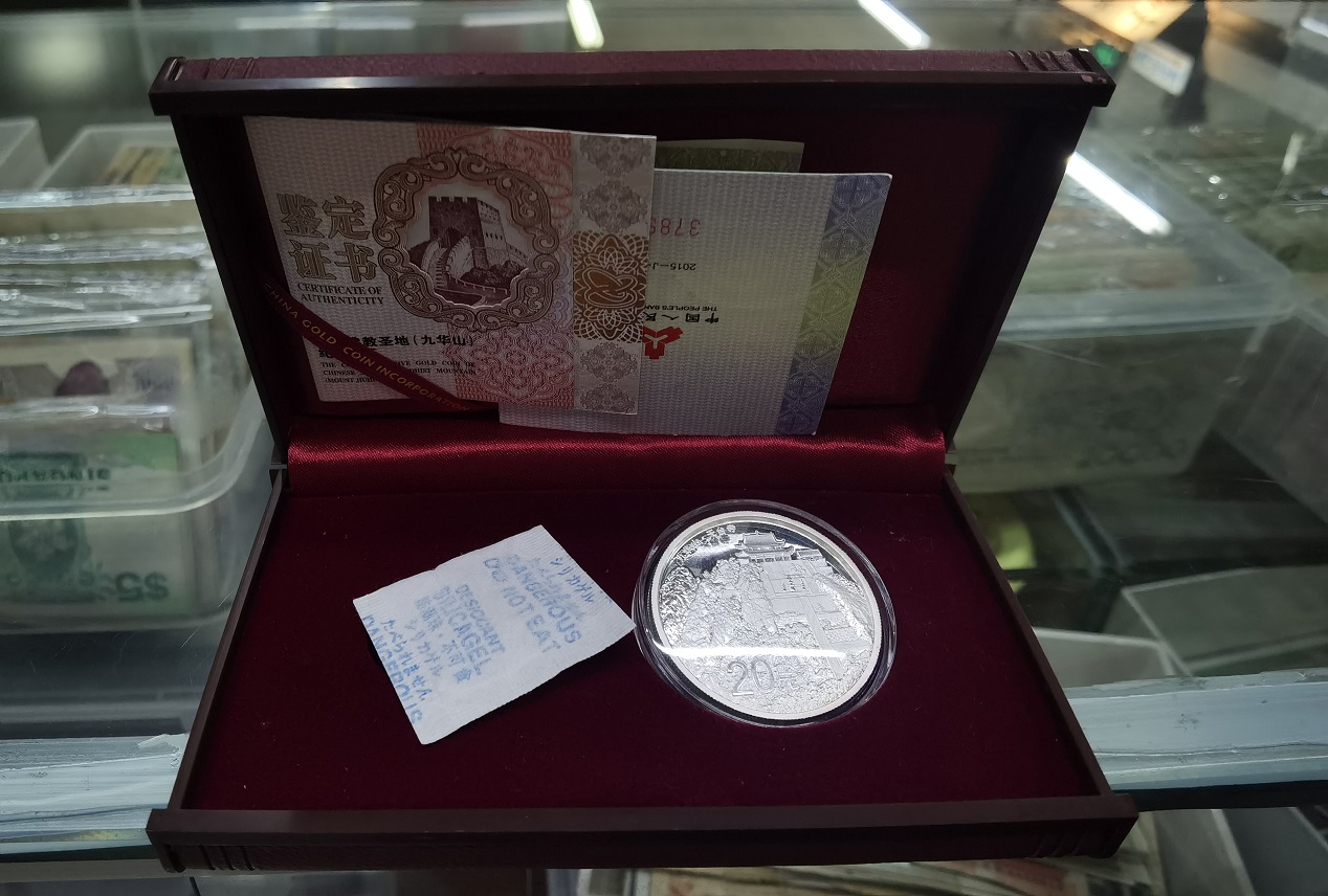 → 九华山 2盎司 银币一个 带金银盒子和证书