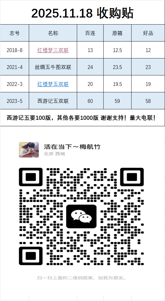 → 11.18收购 红楼梦三红楼梦五西游记五五牛图双联 各1000版