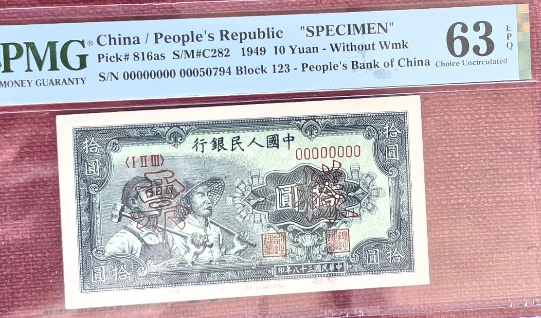 → 售:一版 工人 票样 PMG63E