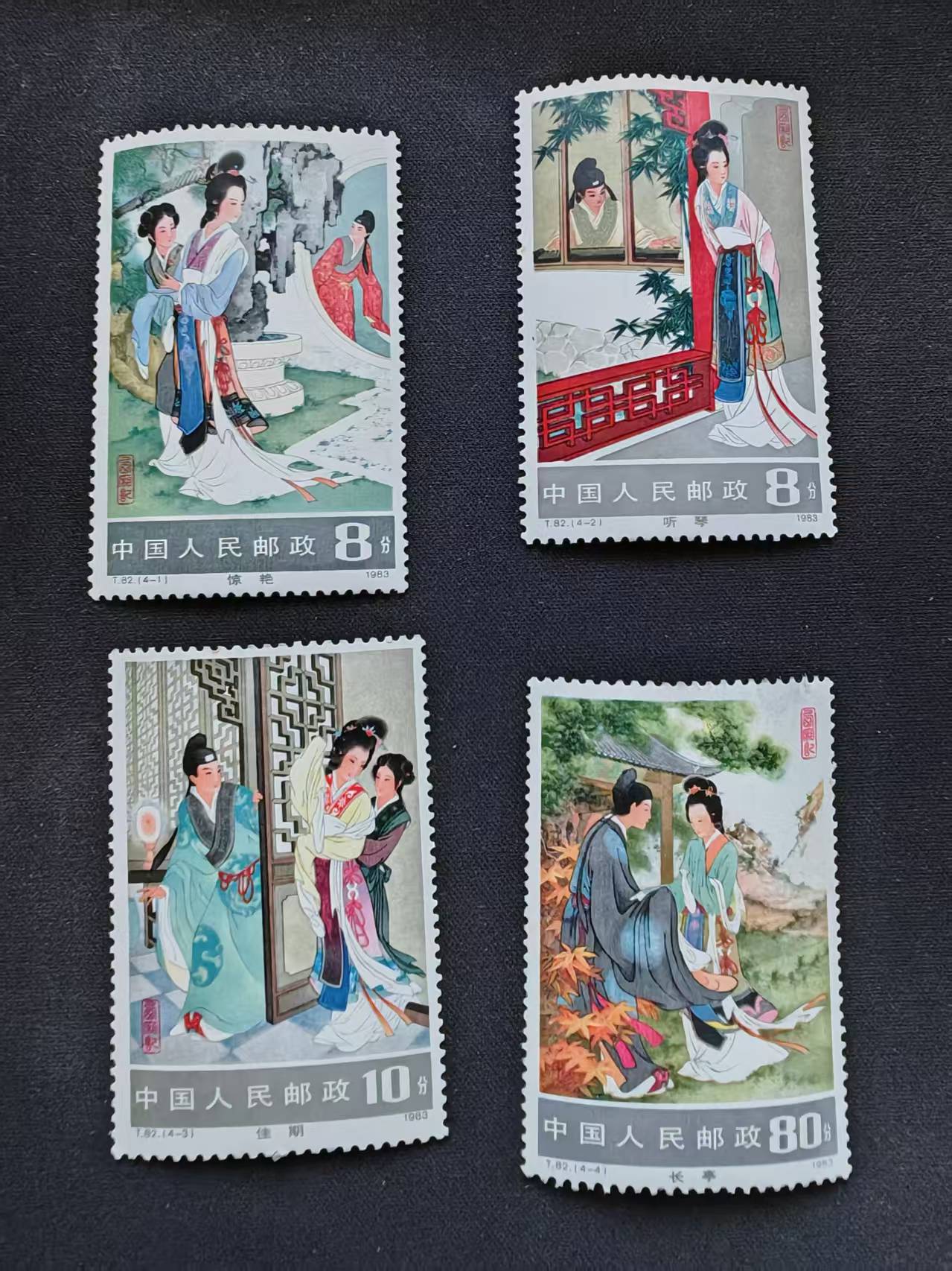 品相如图,乐器70分有戳,无胶,有折,西厢记80分正面有接薄,T4有缺角和缺齿的,杂技有弱齿的,一起240元,看好确认,不明白加13563216800,售出不退。