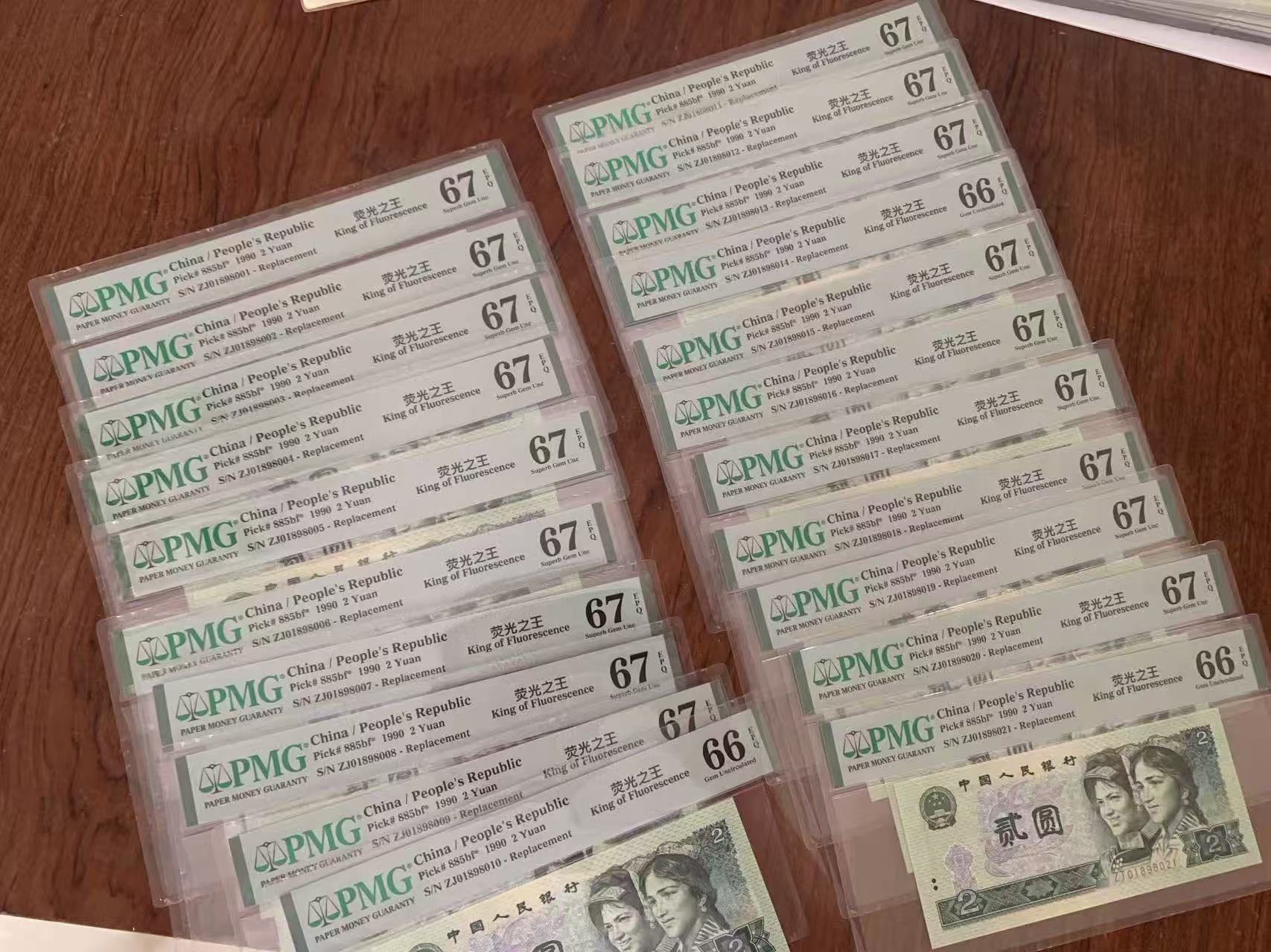 一手货源 稀少PMG评级绿幽灵ZJ001898001标十补号 倒置号原刀