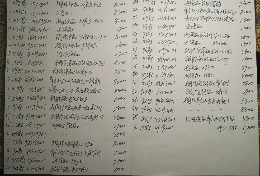 原票品号码如图说明清单,还有36刀含无斑幸运树4刀,微信可以细图,二刀起出便宜,包满意包退!