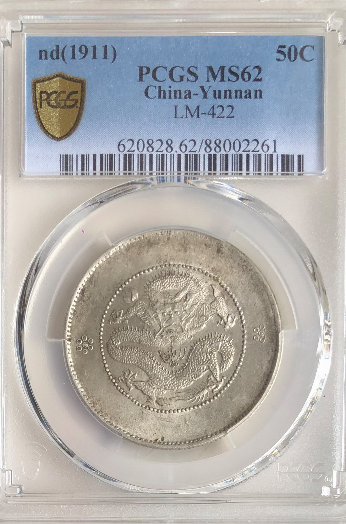 云南半圆 二珠点马尾龙 PCGS MS62