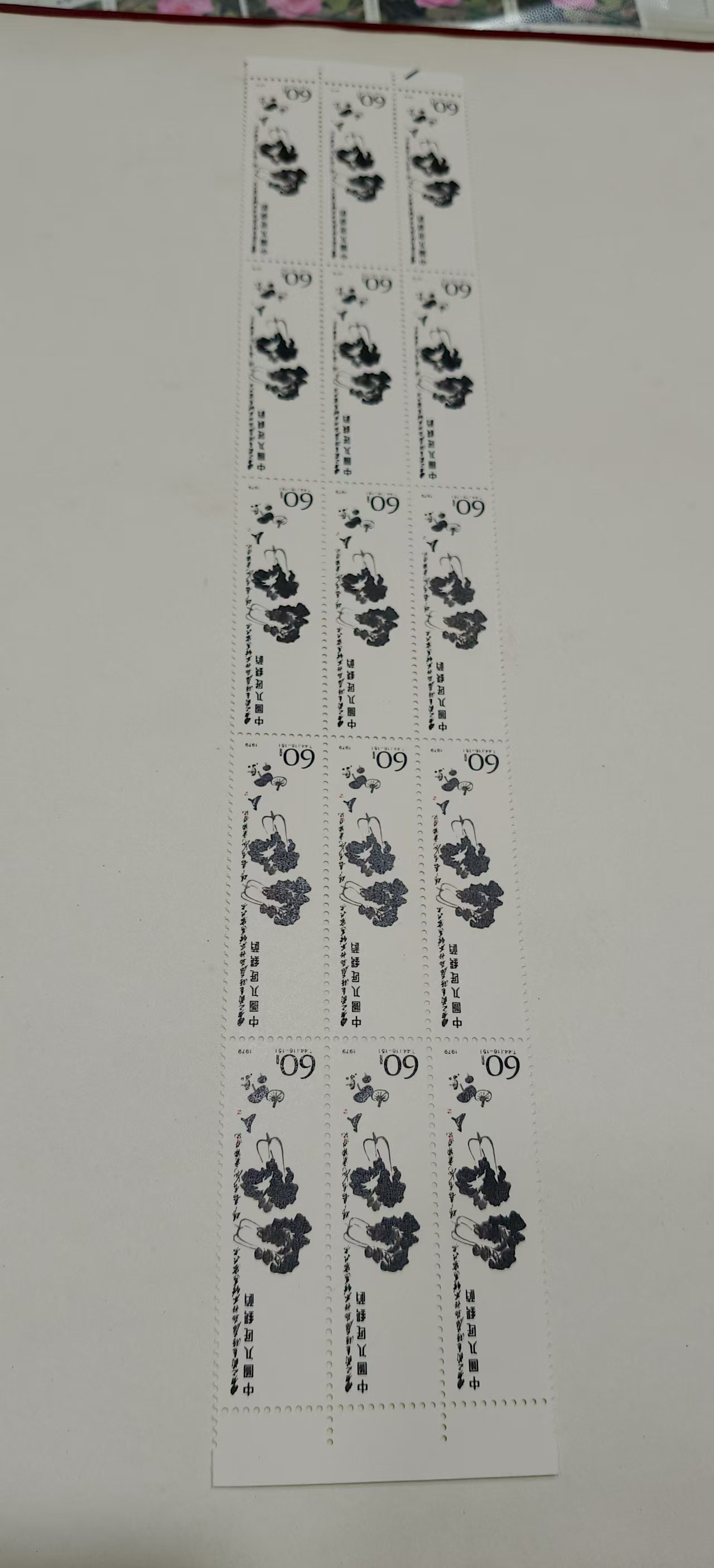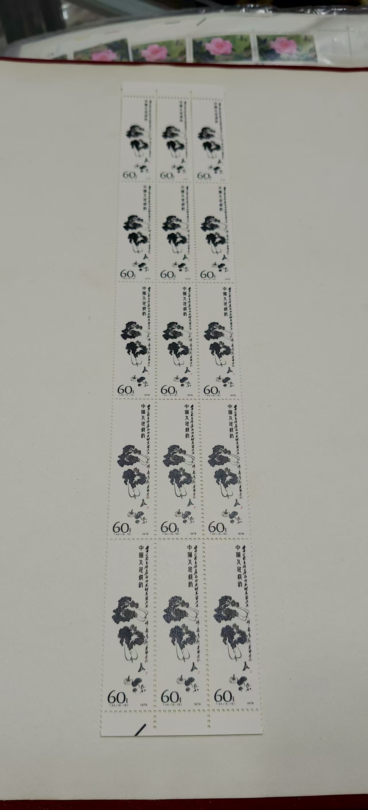 齐白石60分筋票15方联,原胶好品,无黄无折,背后雪白,40.00/枚,全部一起