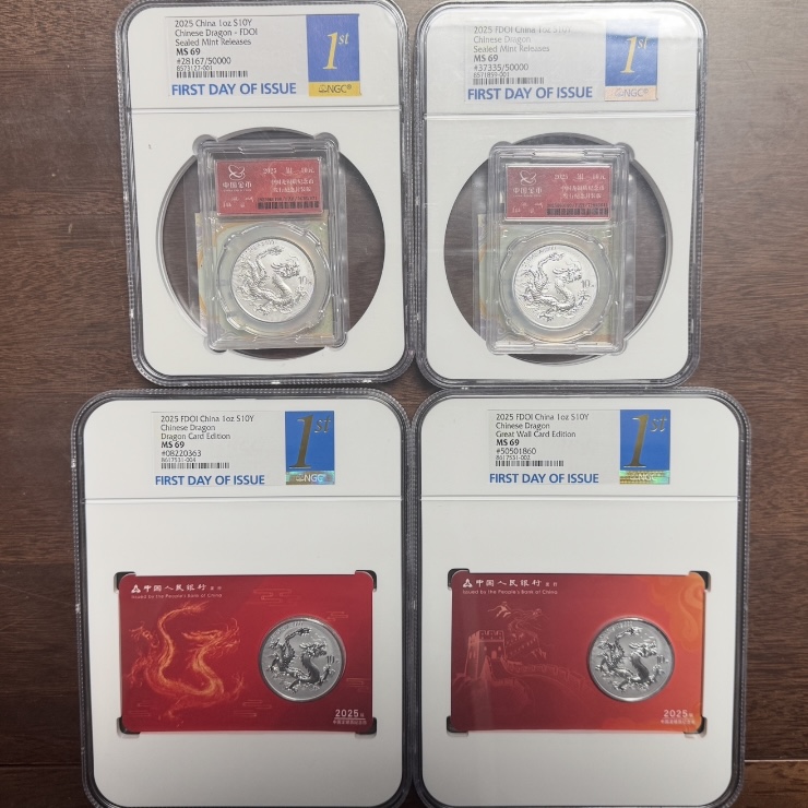 低出NGC首日标封装中国龙69分,全部带证书28167、37335,无4号码2*1700元