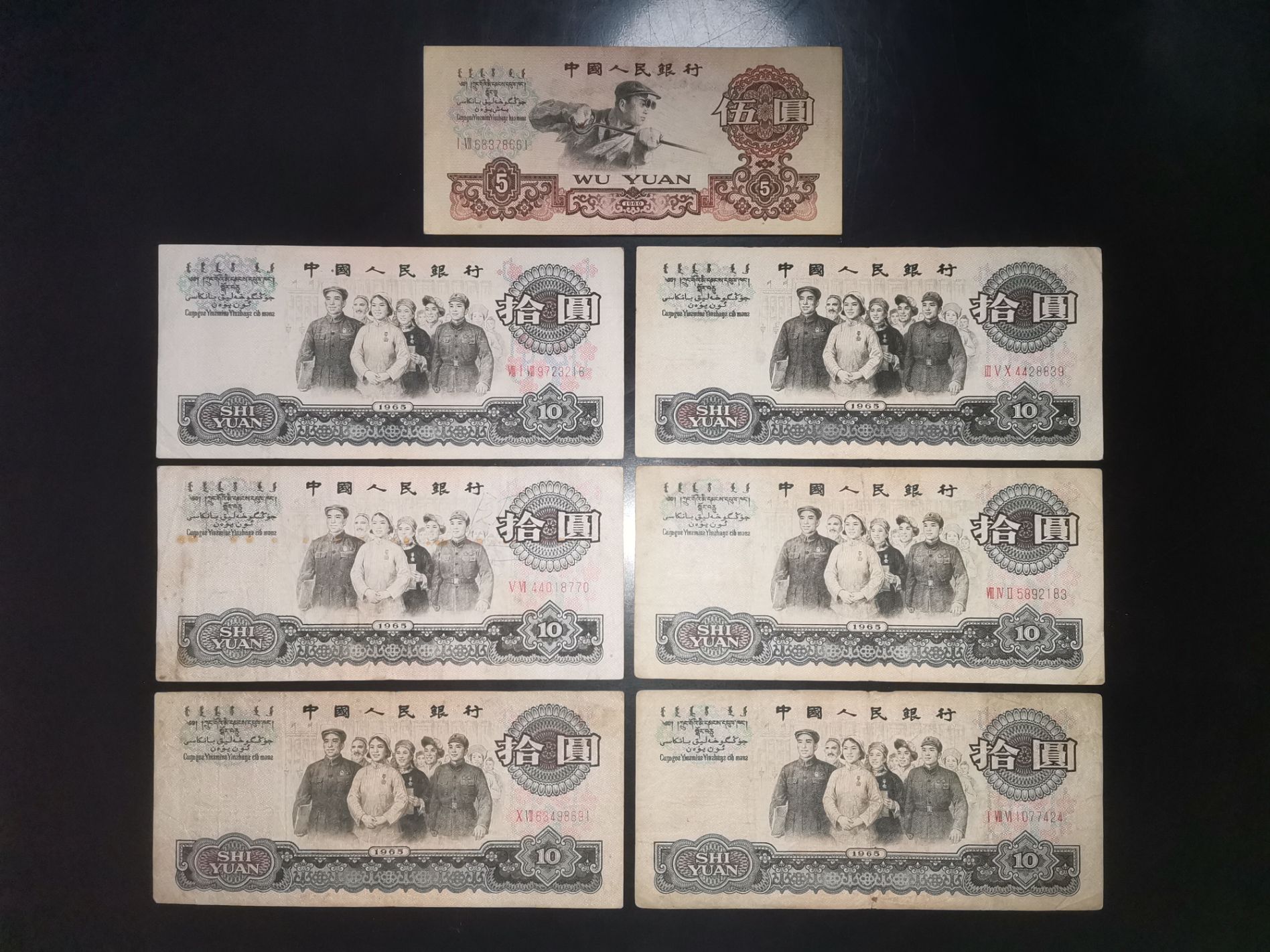 如图:三版炼钢1张,大团结6张,原票美品,板子不错,现1x90+6x35=300元代友低价快出,包品如图包邮。