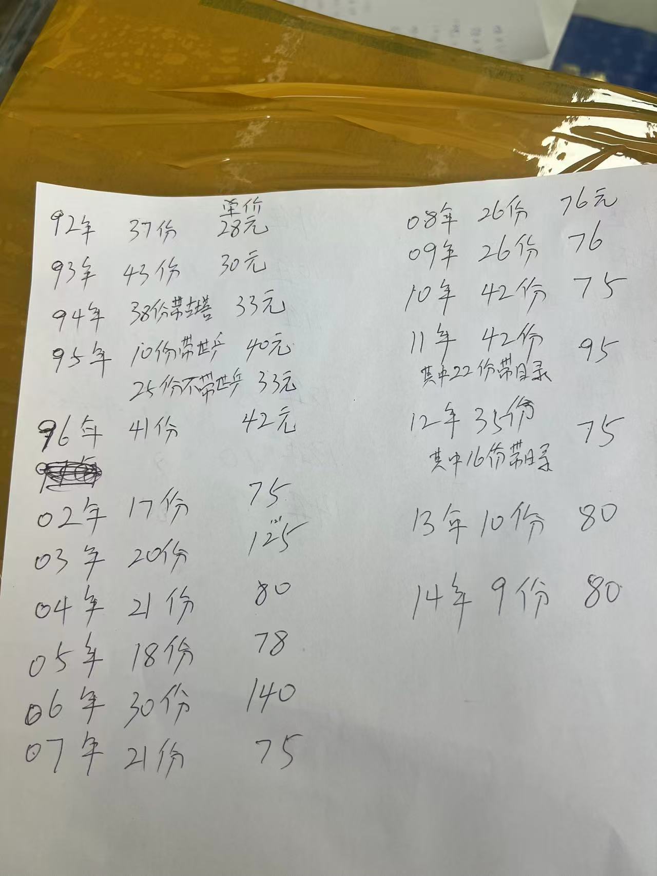 → 出售9 2到 14年份票