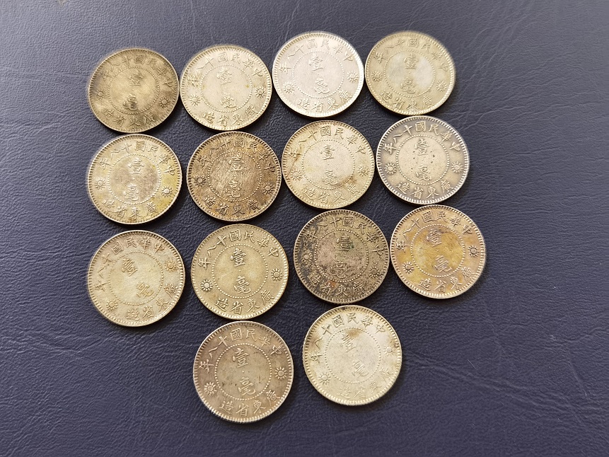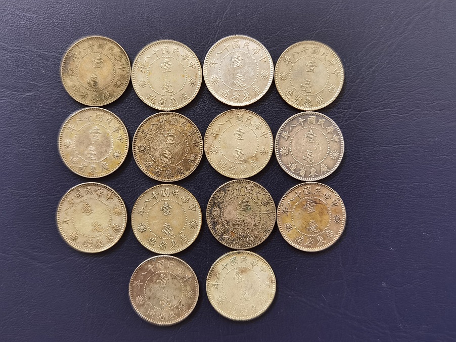 十八年 广东孙像一毫银币 14个 广东18年孙像壹毫银币14个