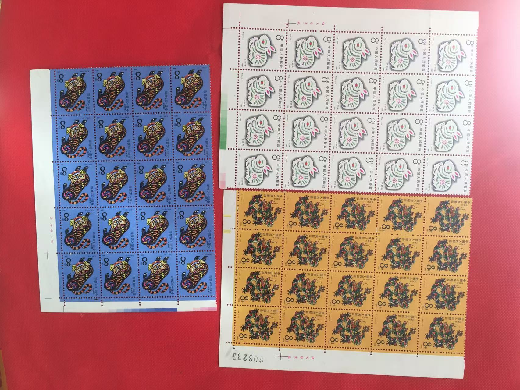 售1轮生肖,虎兔龙马羊联票,背有微黄,共149套,298元,通走1.9元包邮,电微联看图,款到发货。