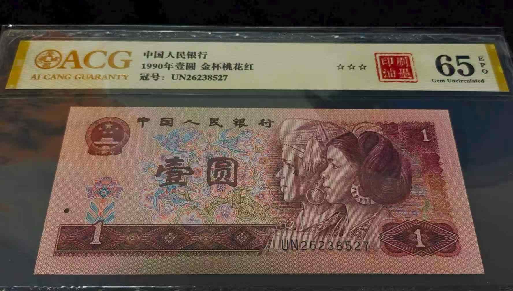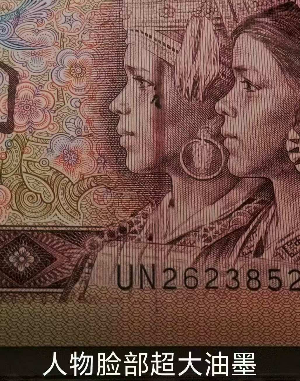 901元金杯桃花红大错币一张,如图纸币左边人物面部上有大面积印油墨,属于印刷错体币,错印部位关键,形态奇特典型,一眼清直观效果绝佳,拥有自然光下和荧光灯下的双重鉴赏之美,能出现这种情况的几率很小,存量极其稀少,珍稀度极高,打着灯笼也难找,可遇不可求,品相绝中绝无油无斑,有极大的升值空间和增值潜力。通常油墨错币最高分为65分,纸币品相嘎嘎绝,珍藏价850元