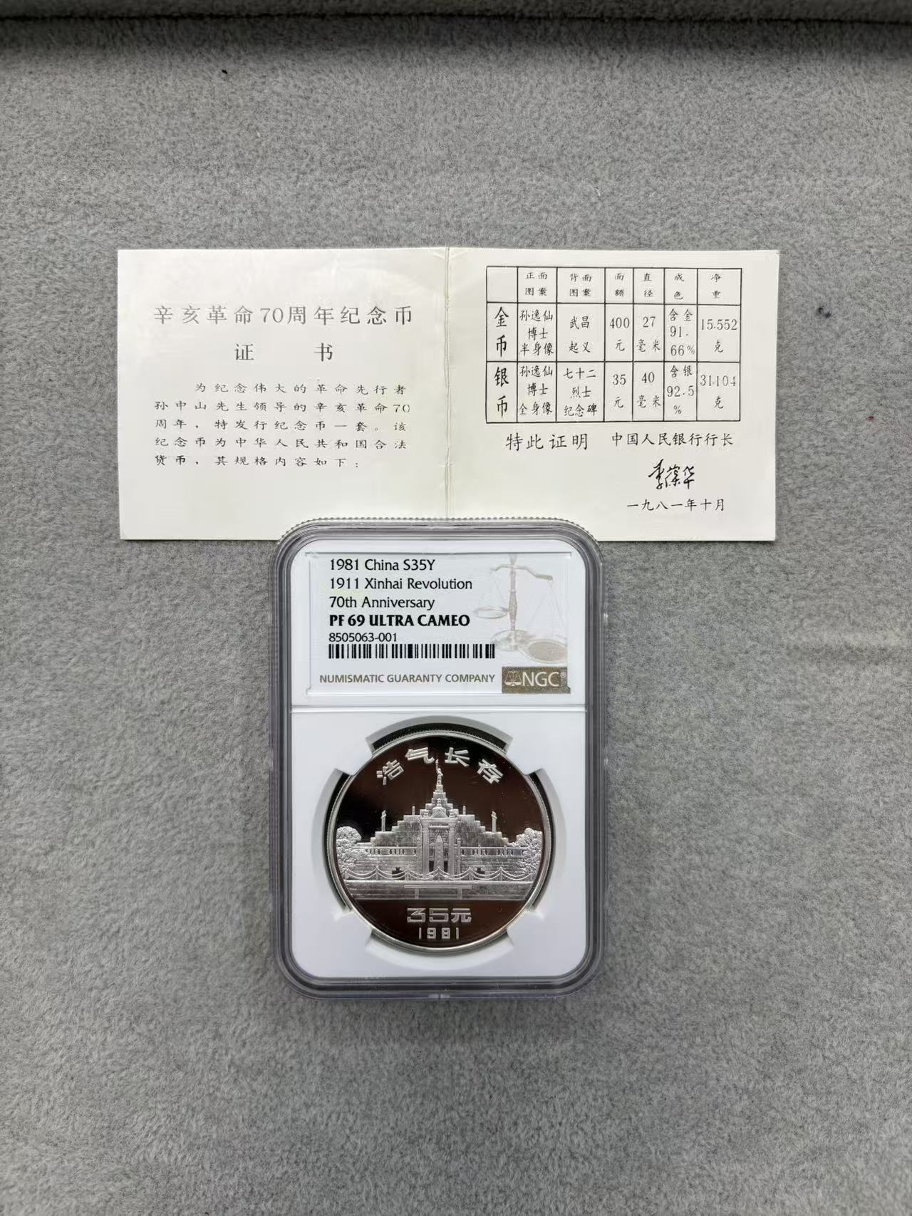 出售辛亥革命70周年银币【NGC69分】