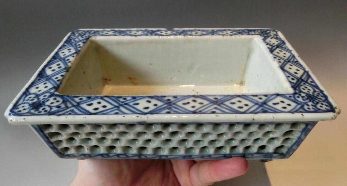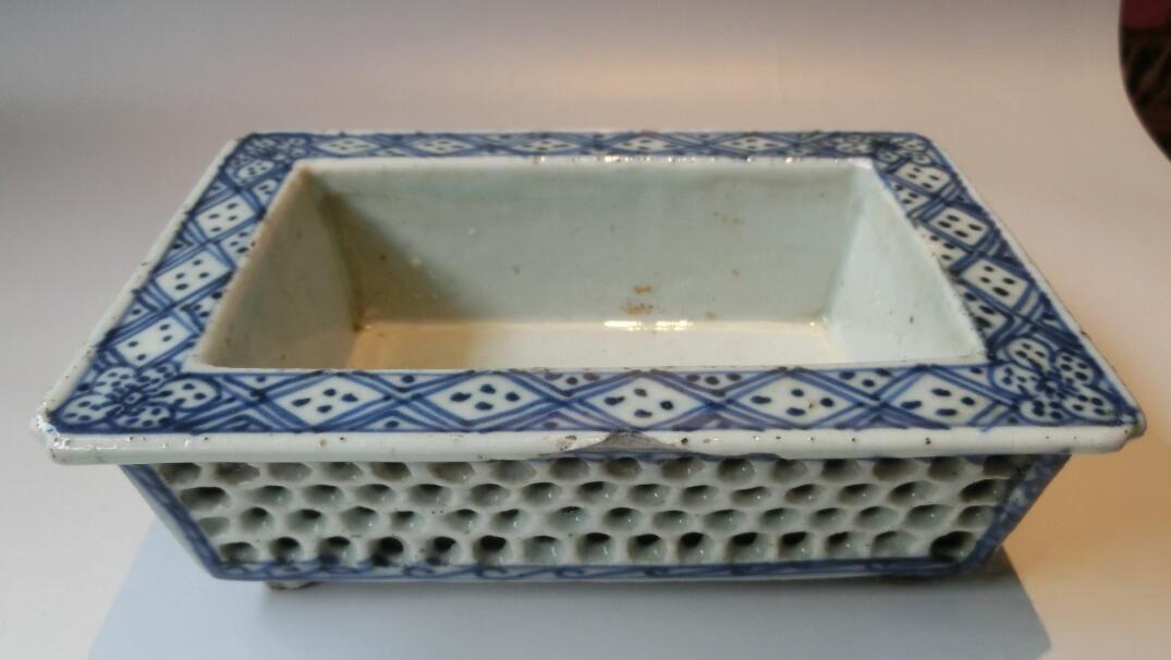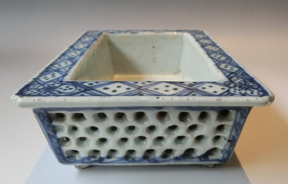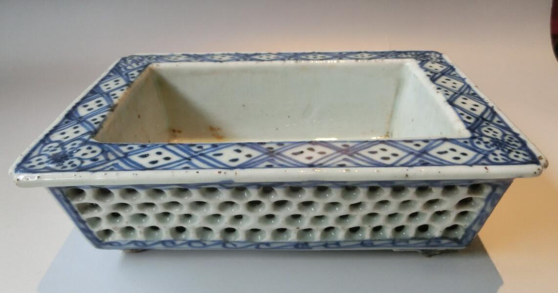→ 多子多福、双层镂空支钉工艺、清朝青花瓷水仙盆