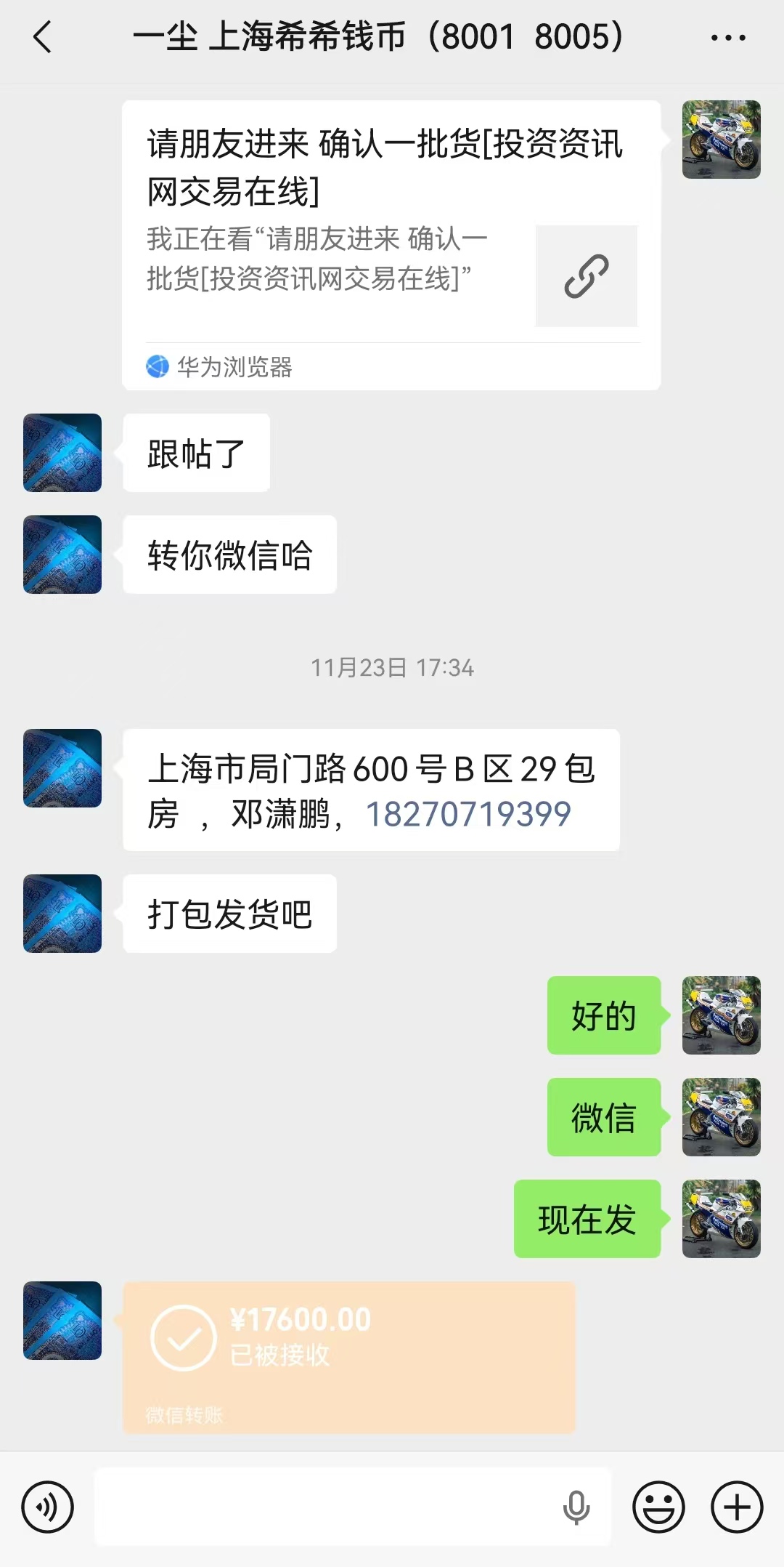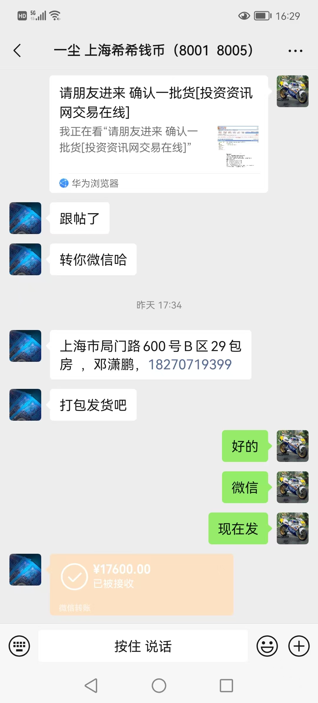 一共17600元的货 我包顺丰安全到你手