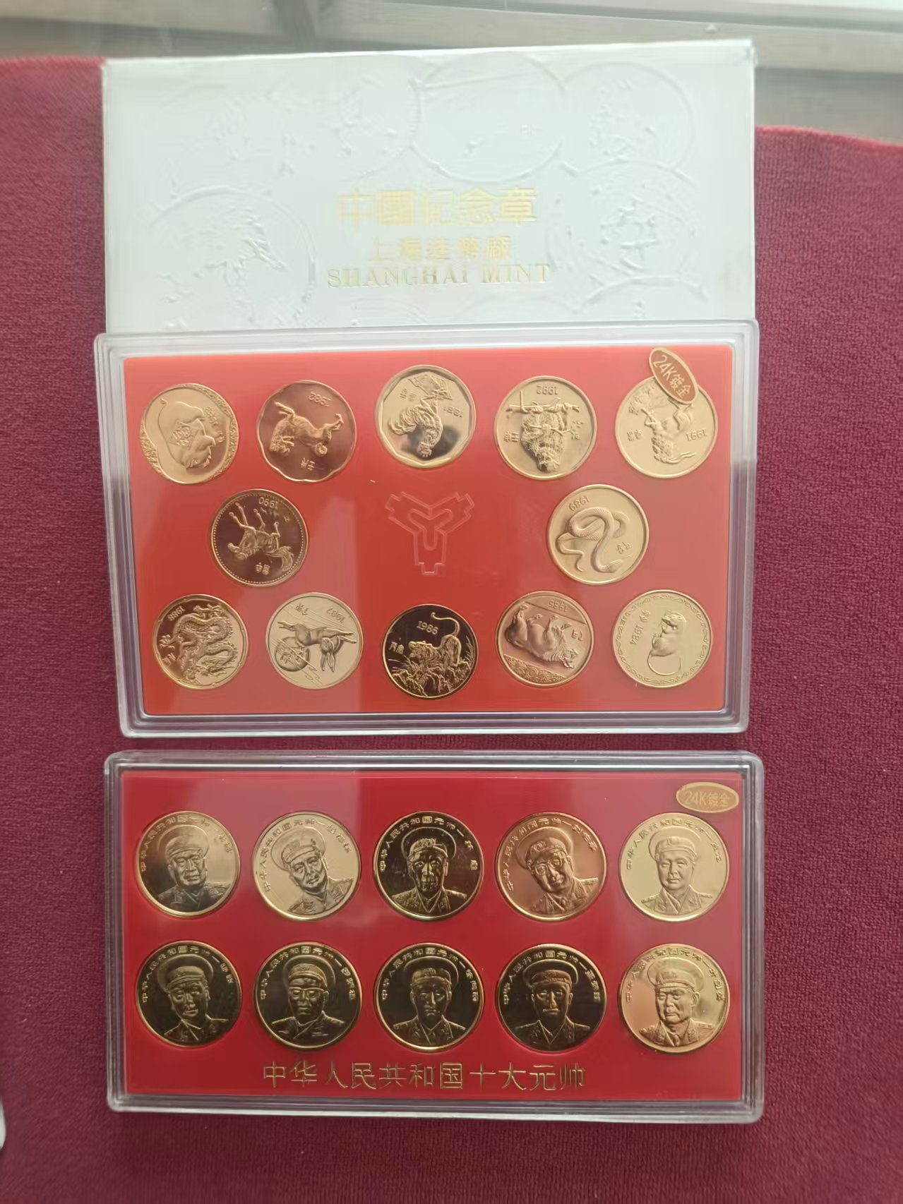 出售十二生肖24K镀金纪念章.十大元帅 2套150元