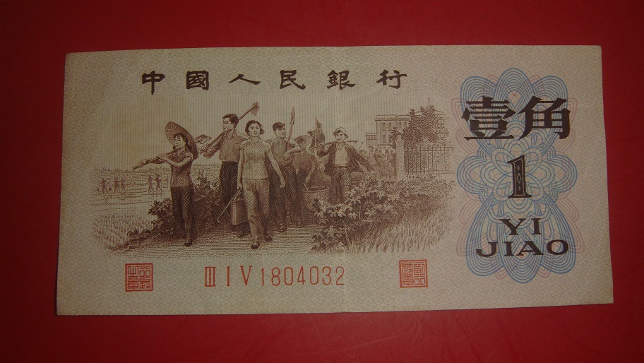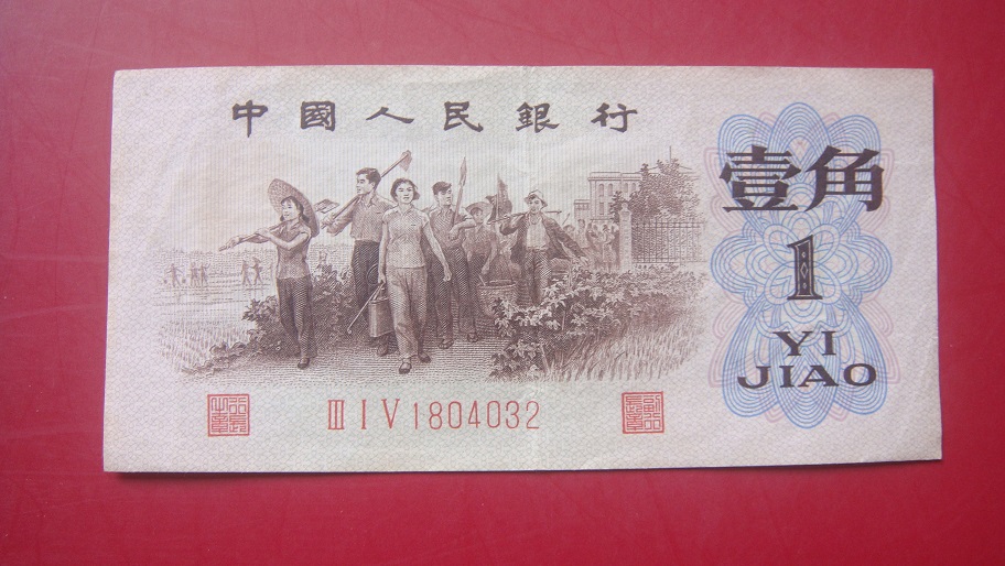 以上这张62年壹角背绿纸币流通过,版子还好,当中有折印,