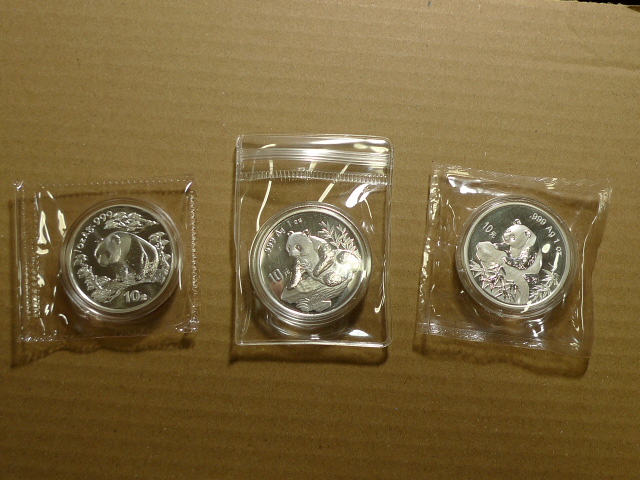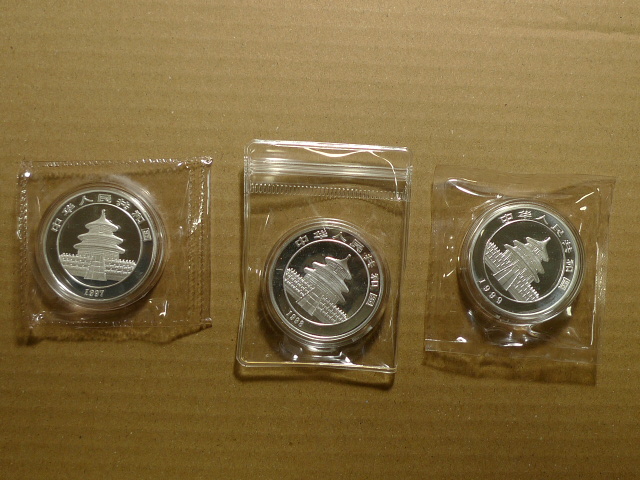 投资资讯网交易在线钱币大卖场现代金银贵金属币 → 出售1盎司熊猫银币89 ---99年;01;02;04;05;07;08;10年的。