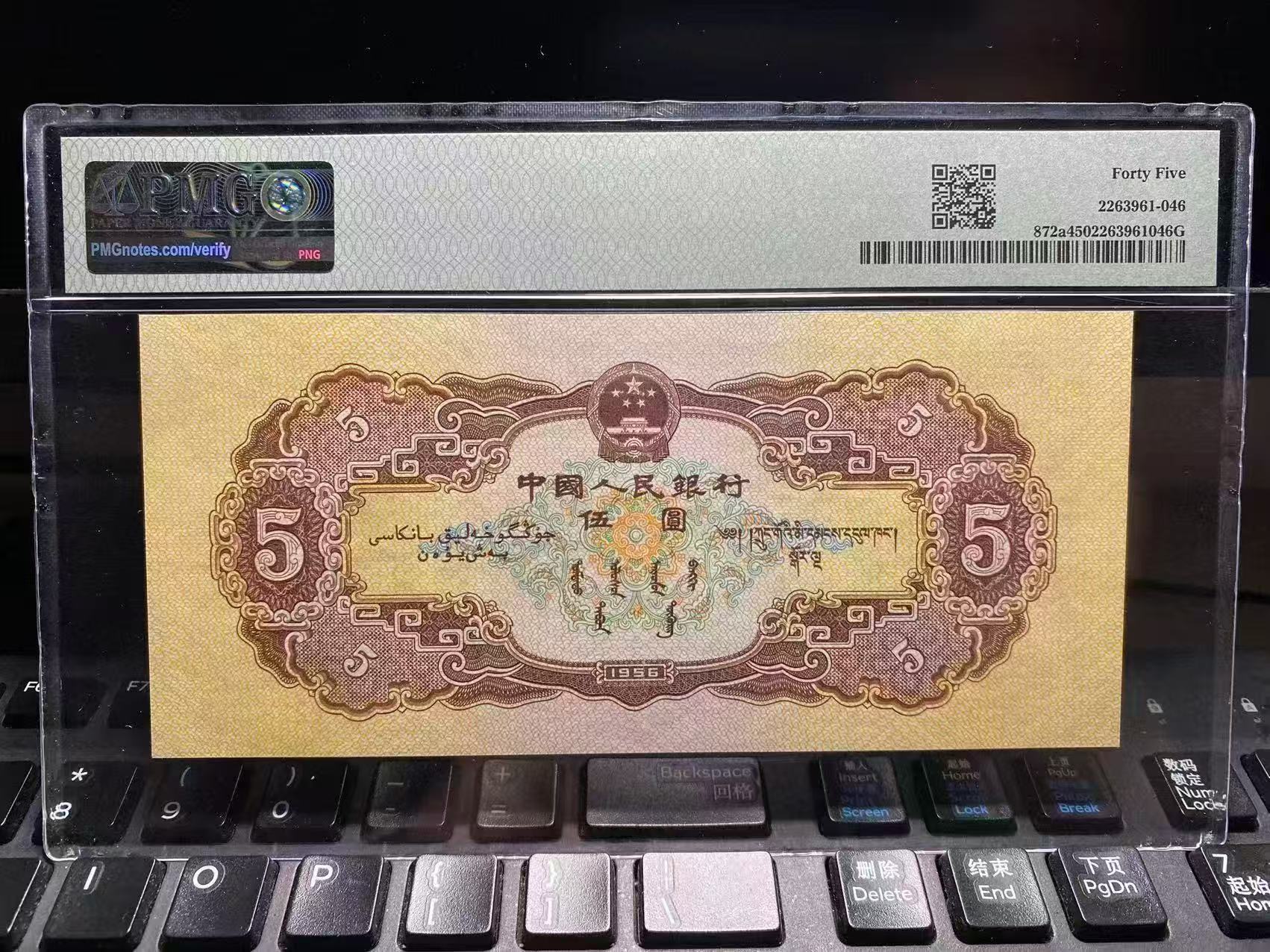 二版海鸥5元美评PMG45爱情号直版,水印清晰,对光无黑线,边角自然,售价3300包顺丰