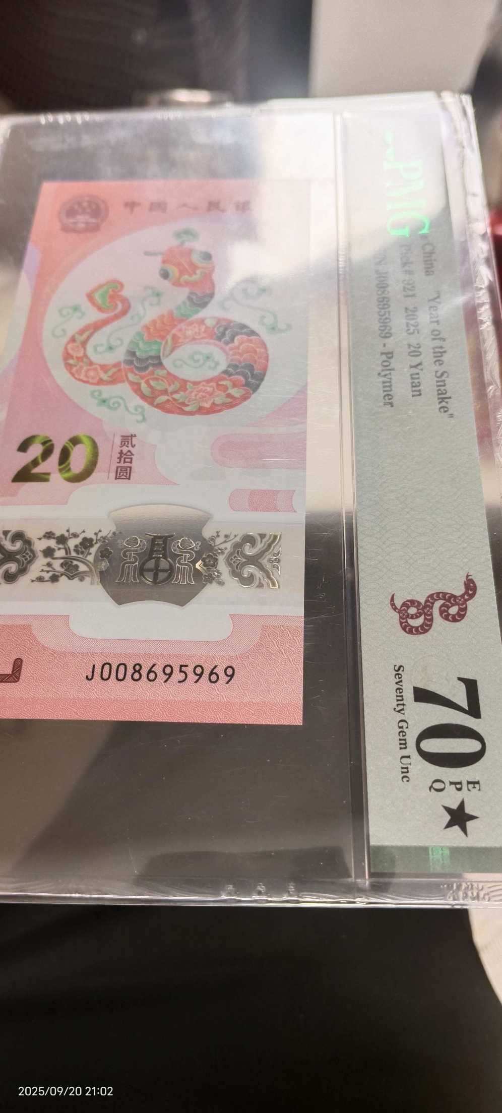 008695969蛇钞PMG70★