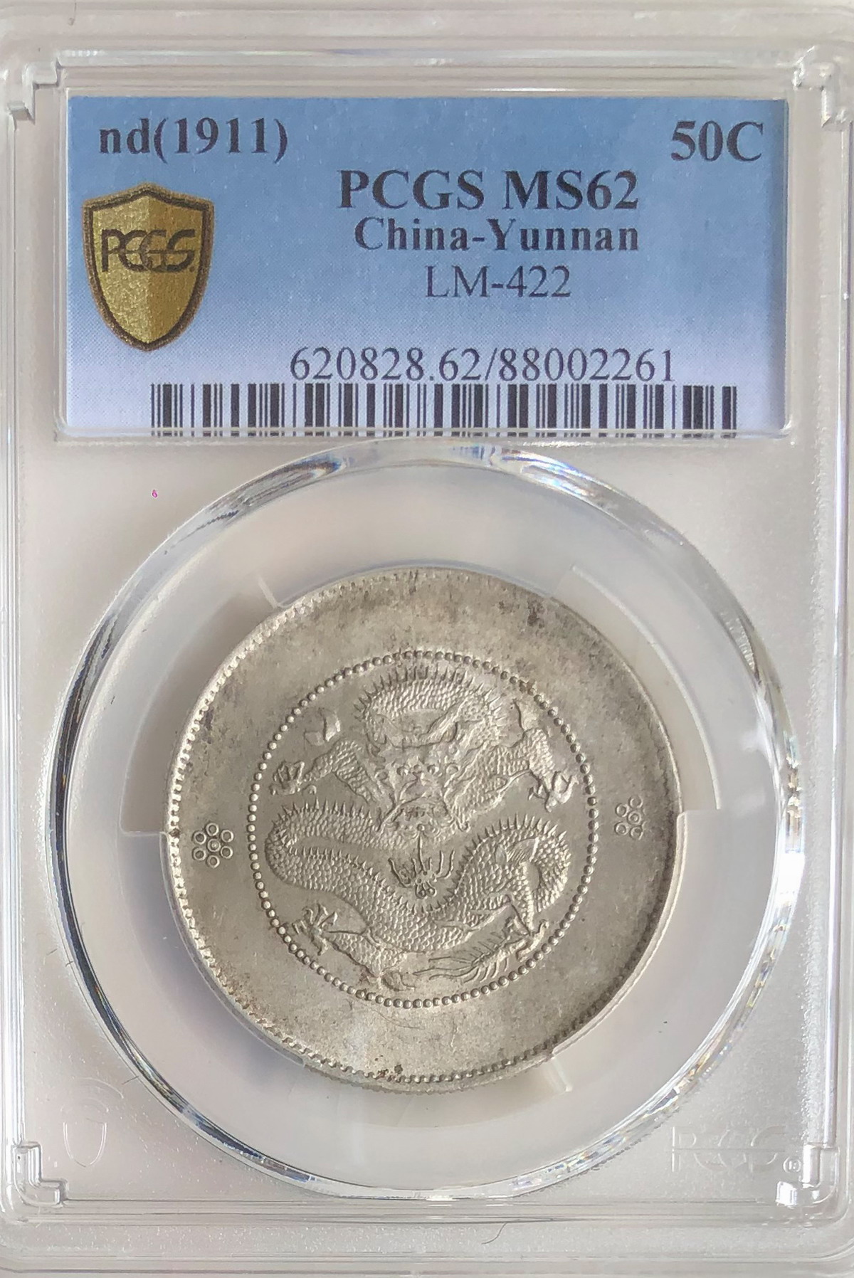 → 云南半圆 原光全龙鳞二珠点马尾龙 PCGS MS62