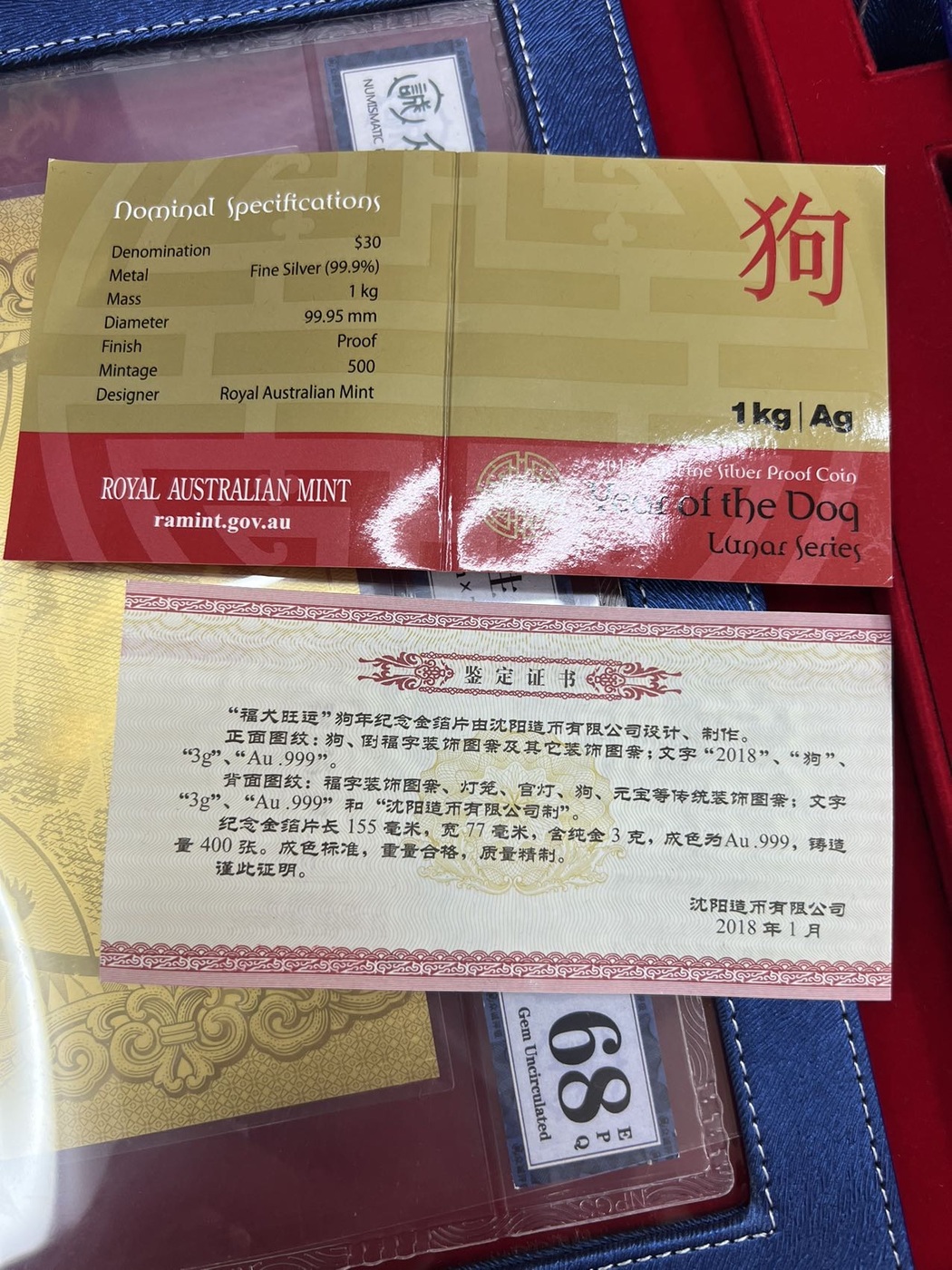 一公斤银狗,三克金钞配套礼品箱售价15500元
