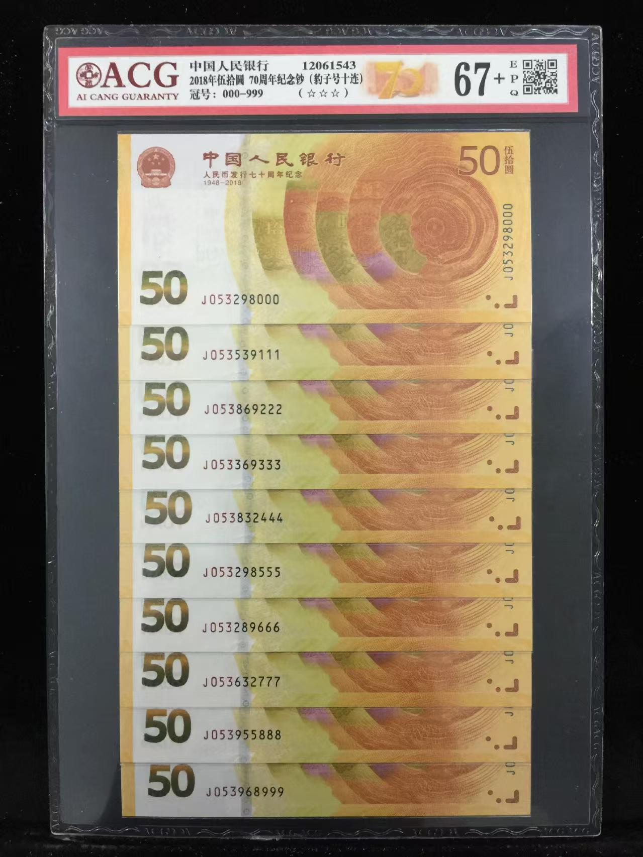 70钞豹子号一套000---999共10张.爱藏67e三星,售1988,