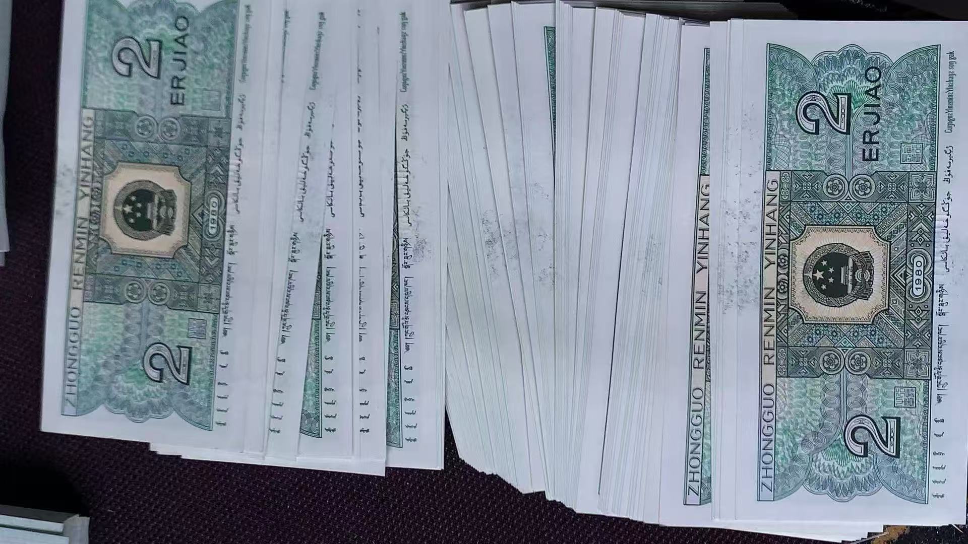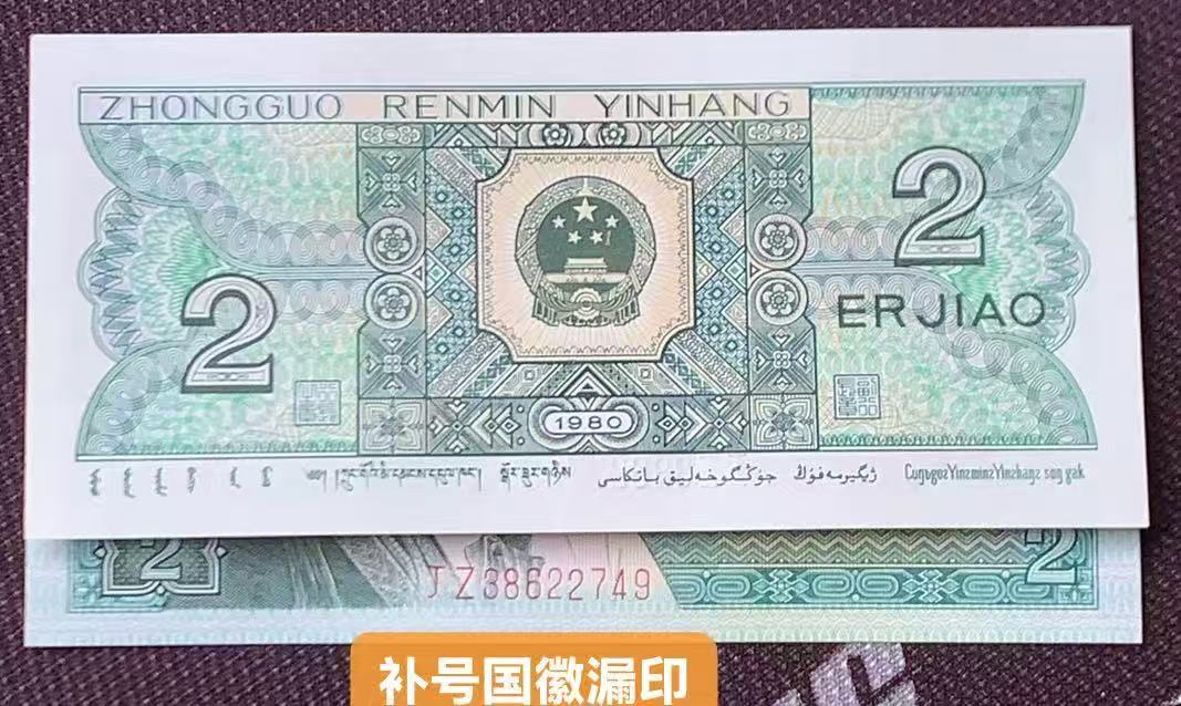 青翠美绿一捆含印刷油墨,32张国徽漏印补,前4张丝丝斑,其它全品无油无斑,售3800元