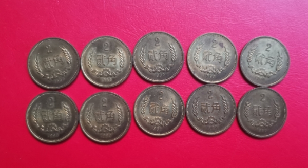 80年2角 北方货 没清洗过。品相好 10枚,100元/枚。