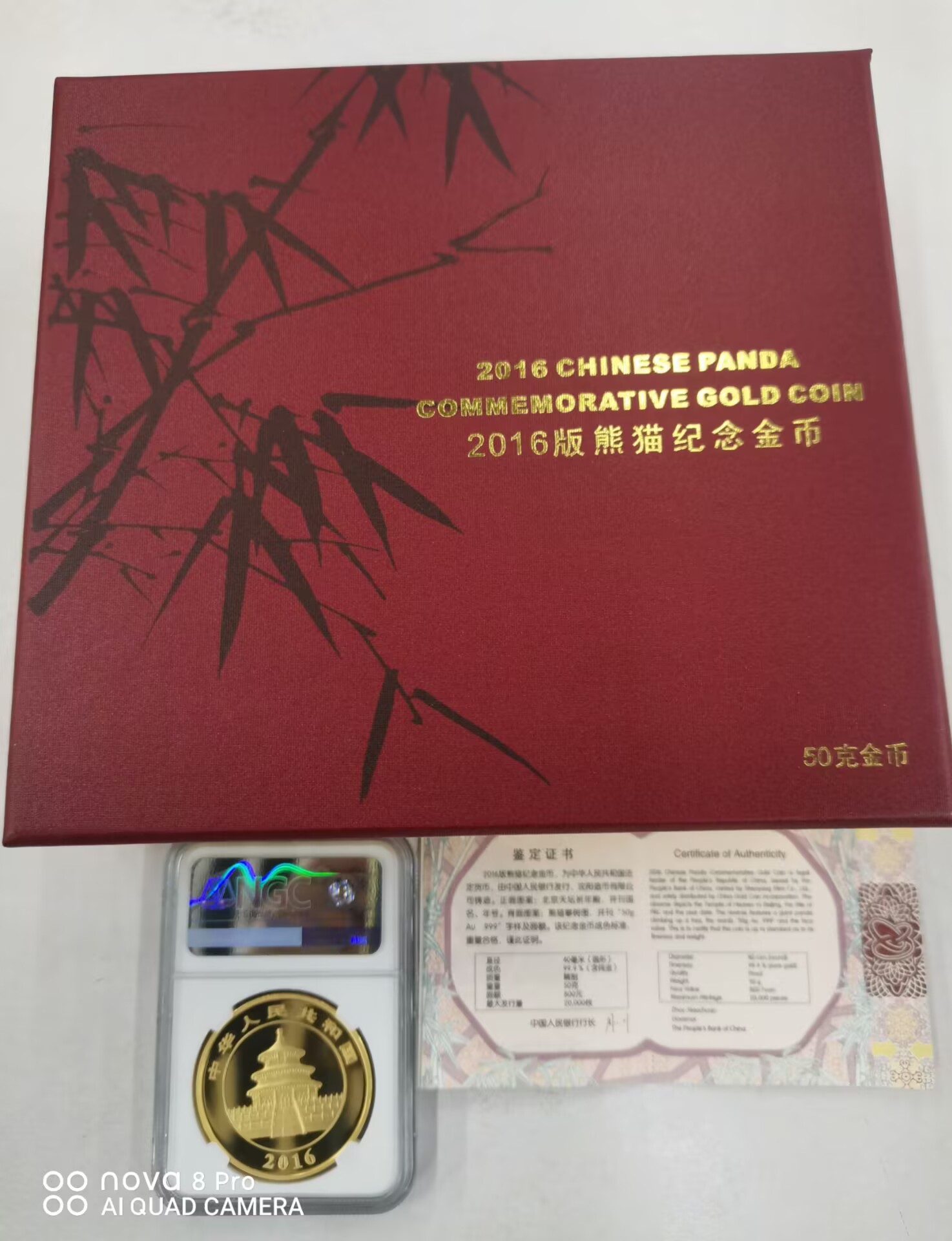 2016年50克熊猫金币,NGC评级币满分70分,带原盒原证书,价格56888元,电联确认