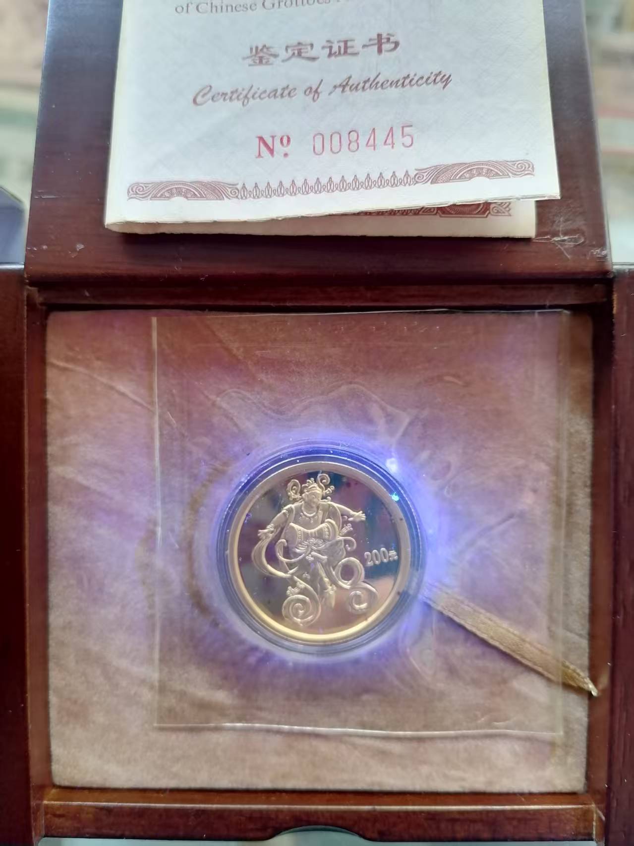售:01年1/2盎司敦煌金币一枚,19500元,品如图,有意请电联!