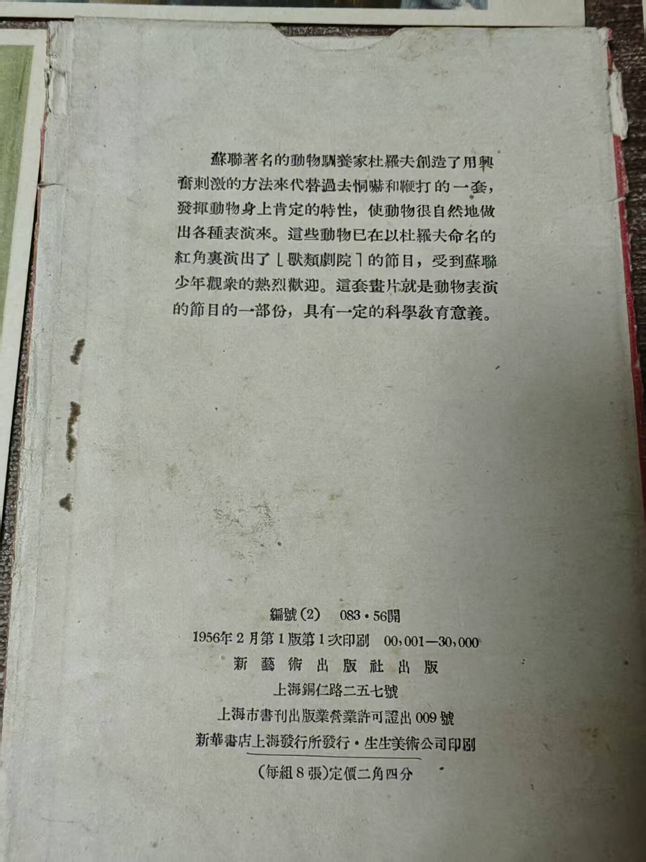 1957年上海新艺术出版社画片一套8枚,带封套,100元。