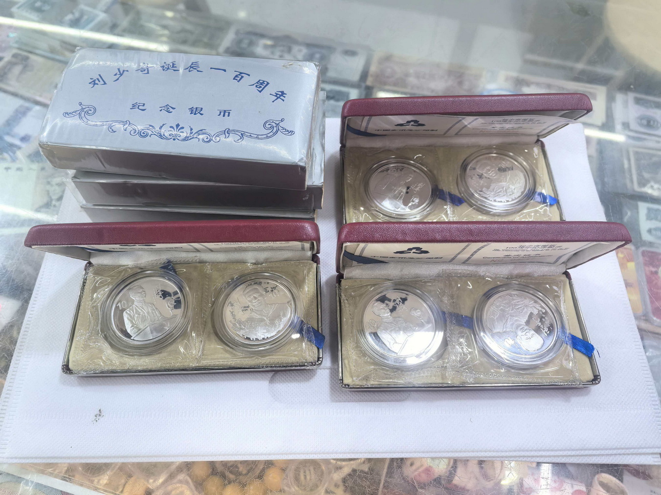 出刘少奇百年银币3套,白求恩银币1套,好品如图,盒证齐全,刘少奇售1260元/套,白求恩售790元/套,不单走,通走包邮,电联15580037365确认,微信同号