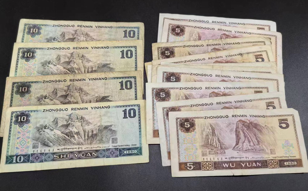 图1-2,2刀内8002连号,有5组标十,30张散连,下面边有点蹭脏,有少数几张票面上有点,其他没有,共80张,标十25,散连2.2