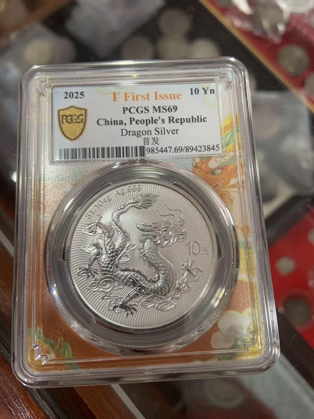 出中国龙银币 PCGS 69分 龙盒(聚财纳福)首发标 好品质 基本没有白斑参考样品图,或者直接挑选没有白斑