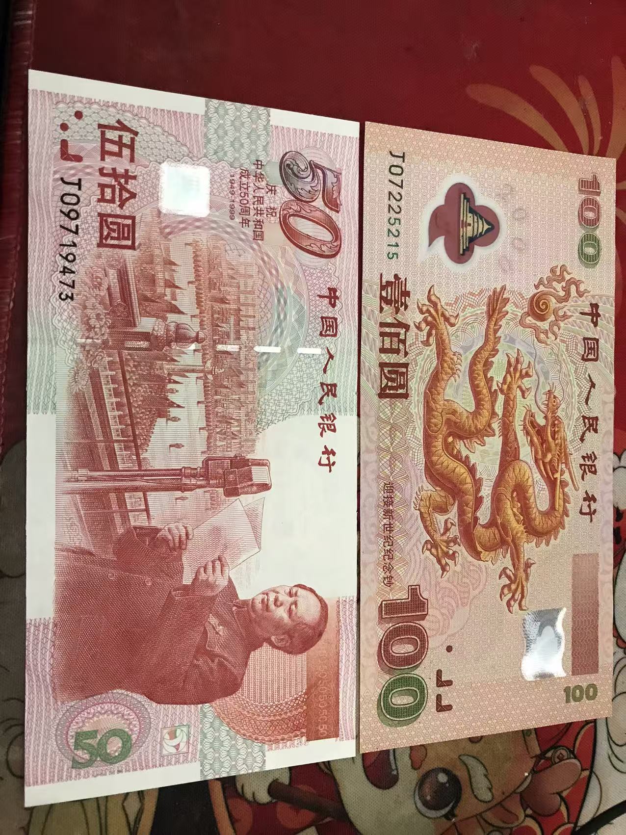 大龙钞一张,建国钞1张