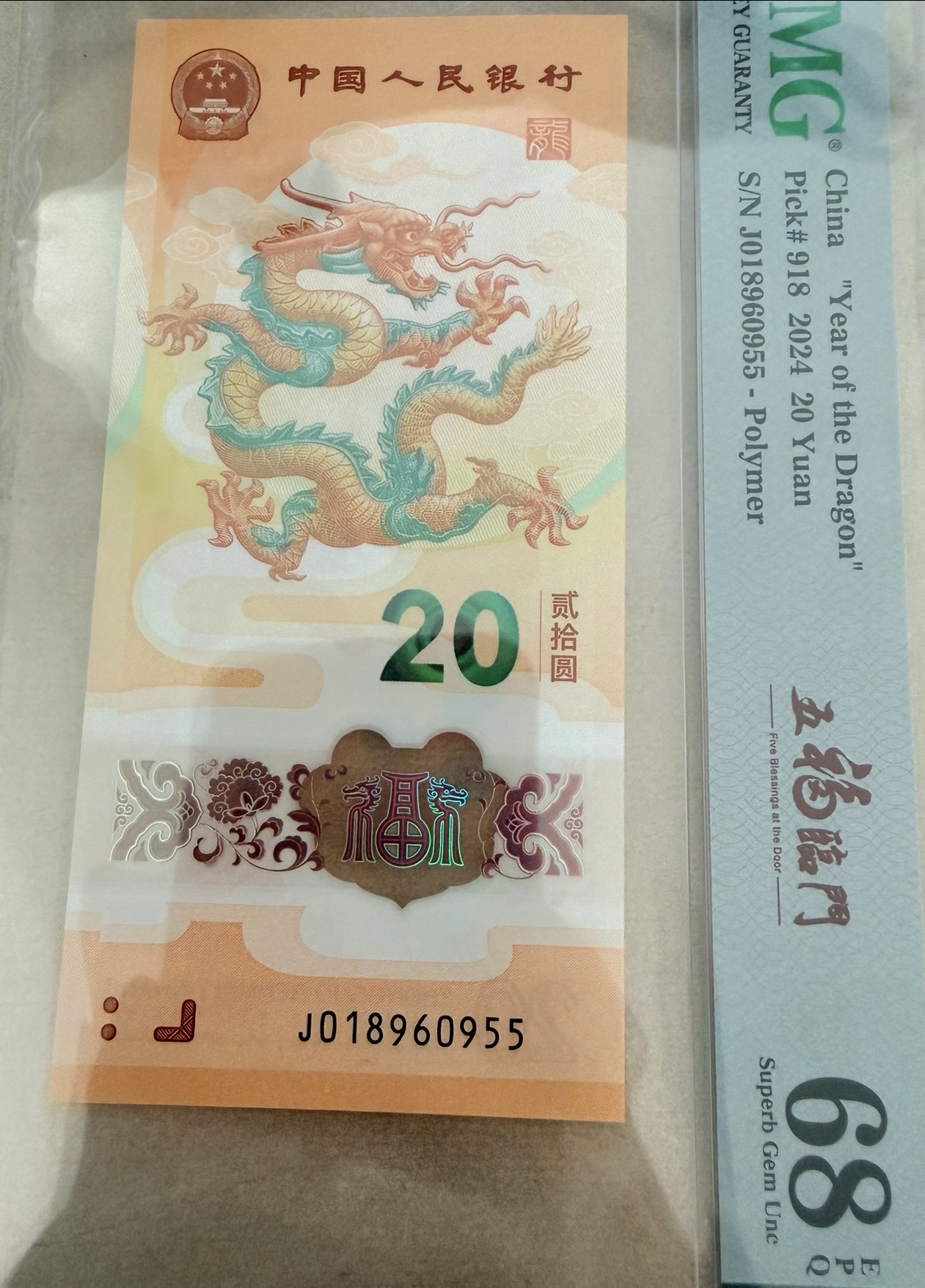 2024龙年纪念钞 五福临门中文标